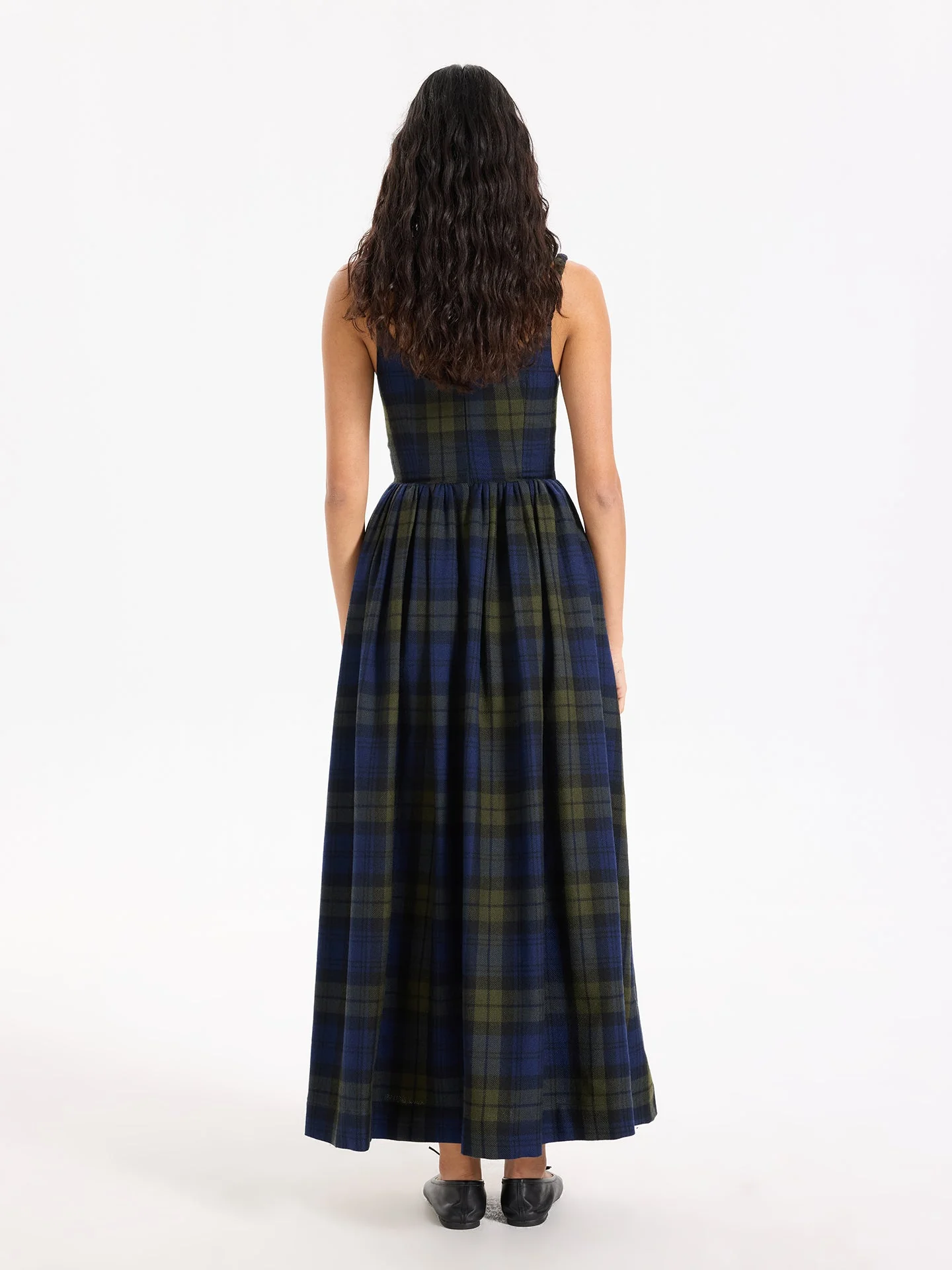 The Áine Wool Dress in navy and green plaid brings timeless sophistication to your seasonal wardrobe with its classic tartan pattern and premium wool fabrication. Crafted from 100% wool, this dress offers both warmth and refined texture — perfect for cool-weather styling. Its tailored silhouette ... Read more balances structure with effortless elegance, making it versatile enough to wear from daytime outings to evening occasions. Finished with thoughtful design and quality craftsmanship, the Áine Wool Dress is a standout piece that pairs beautifully with boots or layered under coats for polished looks throughout the season.