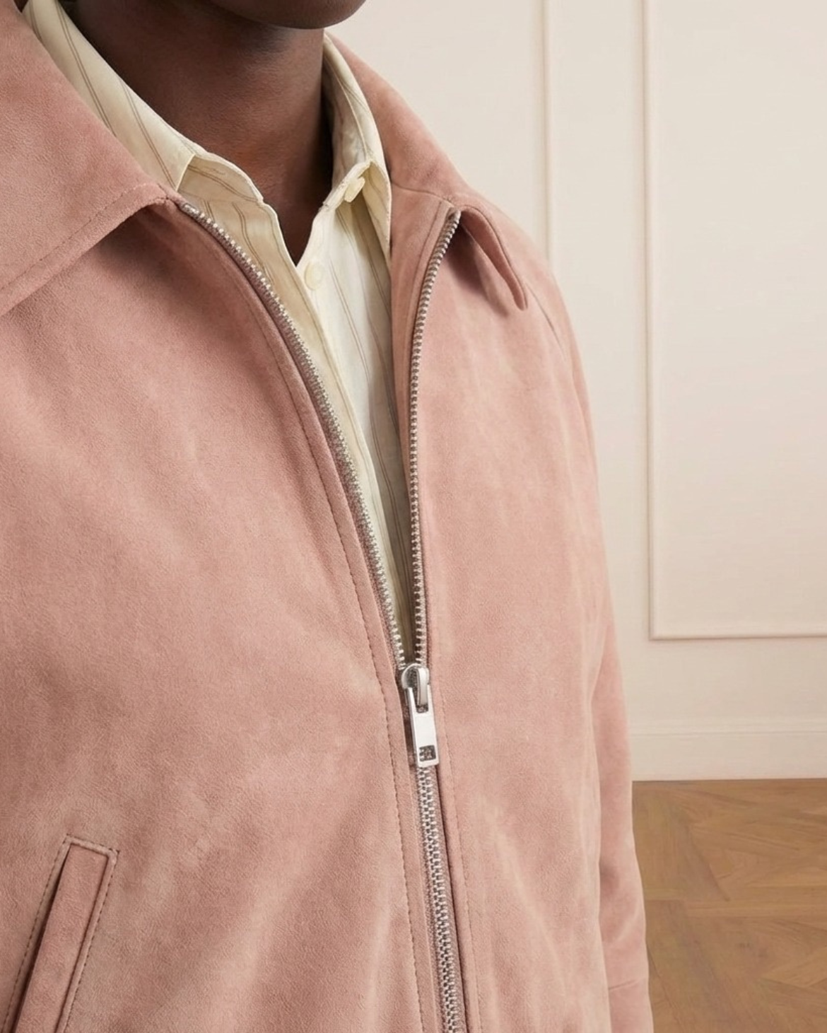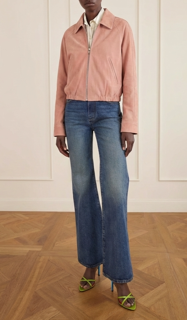 Made from high-quality double-faced suede for a refined finish, the Alba Suede Jacket is a luxurious, vintage-inspired staple crafted from rich, pink toned suede. This cropped bomber features a clean zip-front closure, a classic pointed collar, and an elasticated waistband for a comfortable yet ... Read more structured silhouette. Its minimalist design and functional side pockets make it an effortless choice for elevated daily wear.