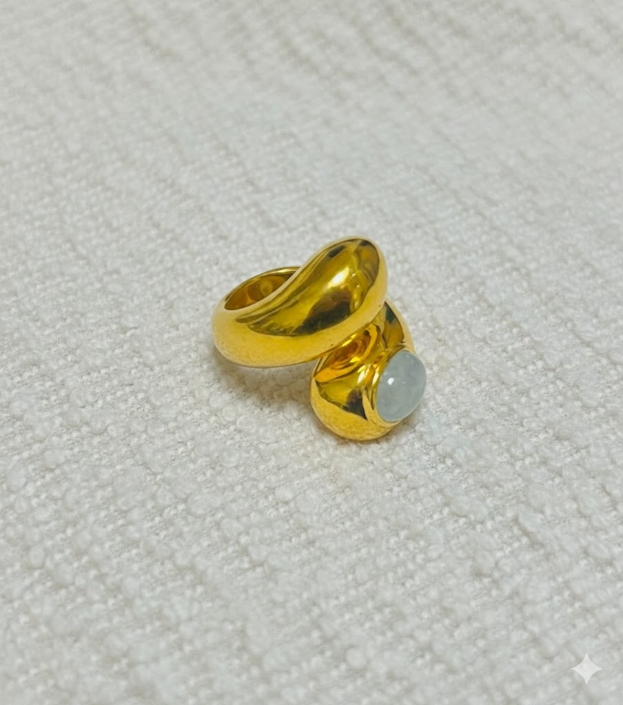 Large semi-precious stones are used to hand-craft the Tay jewelry collection, which is produced by talented craftsmen whose imaginations are unconstrained by contemporary trends. The design duo chooses each stone that is set by hand in gold-plated sterling silver or gold-plated brass settings. Prehnite, Malachite, Aquamarine, and Labradorite are just a few of the unique gems created in exotic Sri Lankan and Thai workshops. They are placed in a mix of traditional and contemporary settings.