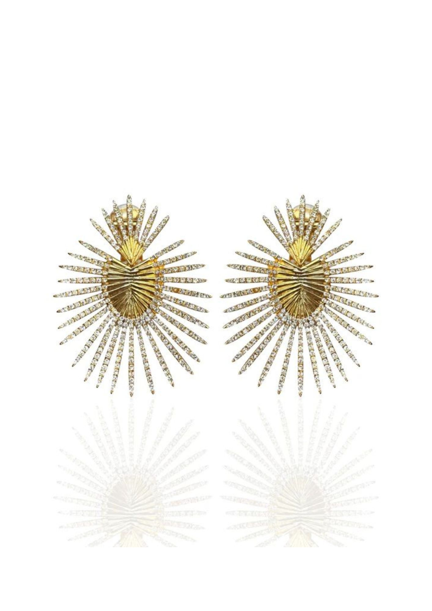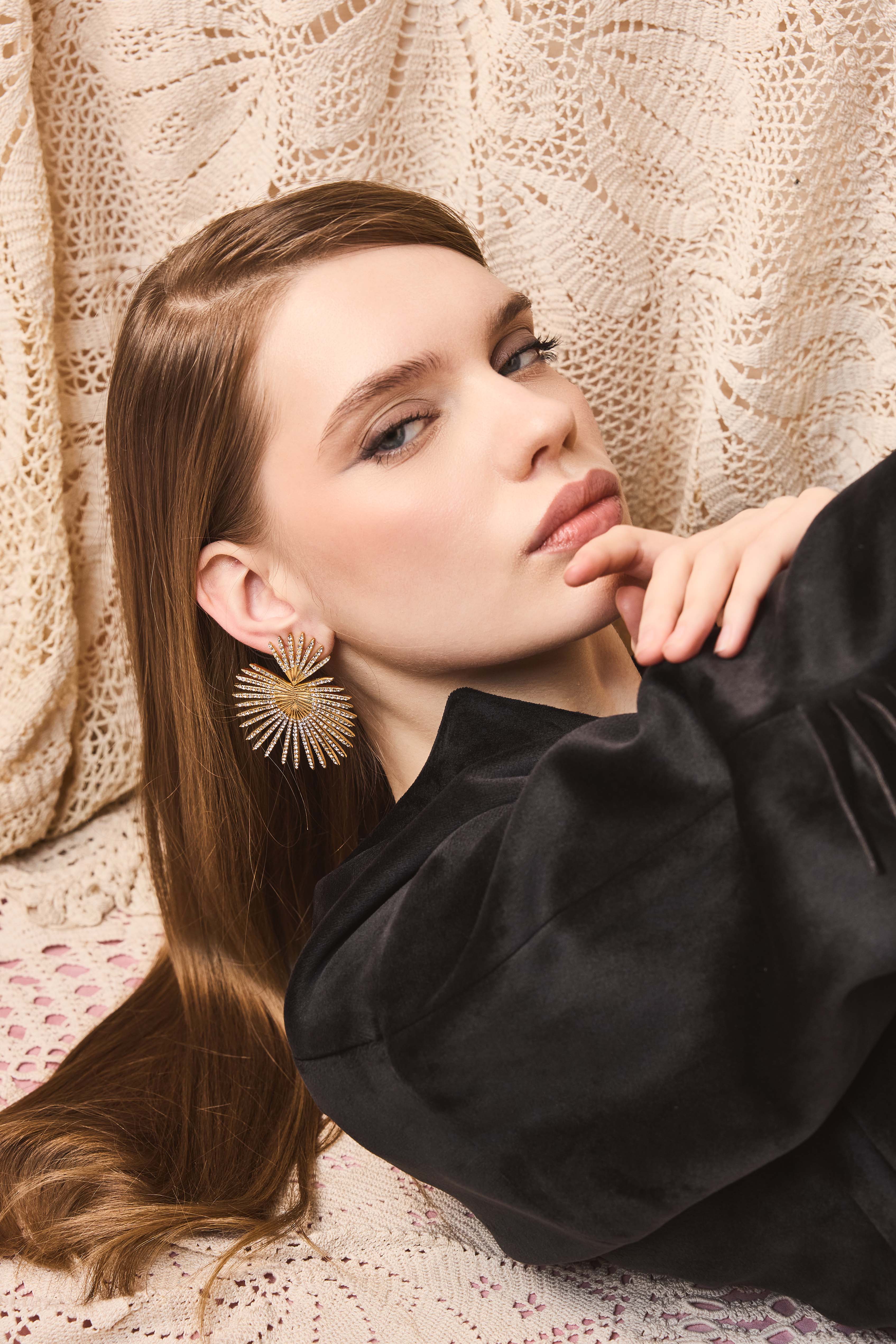 Celestial Golden Earrings. A radiant statement inspired by celestial bursts, Astra captures the brilliance of a golden sun in full bloom. These earrings are the perfect addition to bring that excitement to any outfit. ... Read more