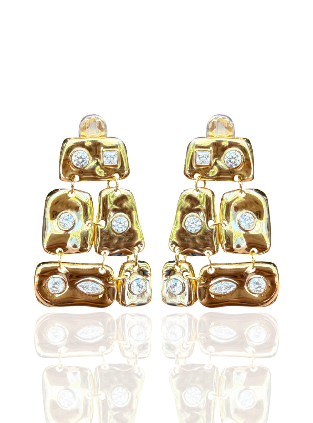 The AURIS Earrings channel modernist elegance with their cascading molten-gold panels. Encrusted with radiant strass, they strike a bold balance between sculptural form and refined sparkle. PRODUCT DETAILS Material: . Length: 7 cmKeep your jewelry radiant with these tips: Avoid contact with cleaning ... Read more products, oils and perfumes. Remove before swimming or bathing. Protect from excessive sunlight. Gently wipe with a soft, dry cloth. Use the provided pouch for travel.