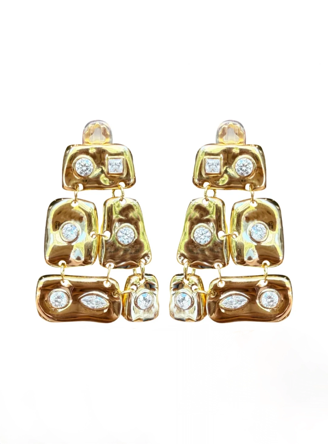 The AURIS Earrings channel modernist elegance with their cascading molten-gold panels. Encrusted with radiant strass, they strike a bold balance between sculptural form and refined sparkle. PRODUCT DETAILS Material: . ... Read more