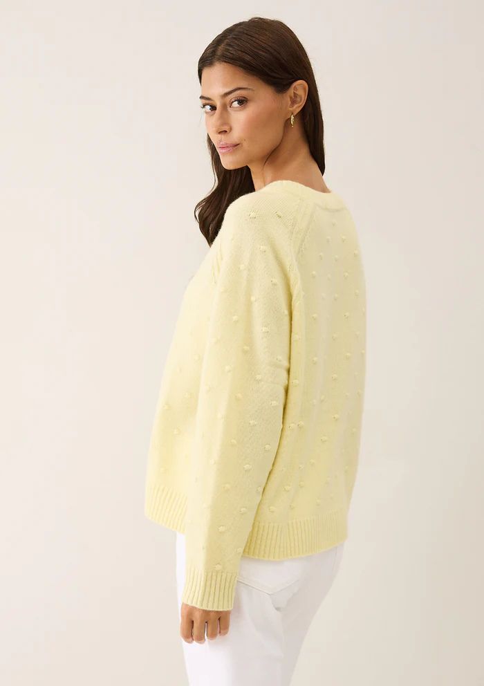 The Bobble Sweater in Lemonade Yellow is a playful, cozy knit featuring a textured bobble design. Its cheerful pastel hue and relaxed fit bring a fresh, uplifting touch to any outfit. ... Read more