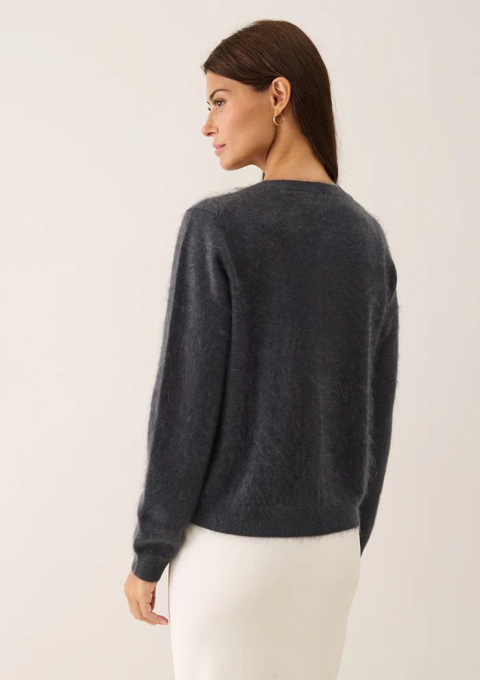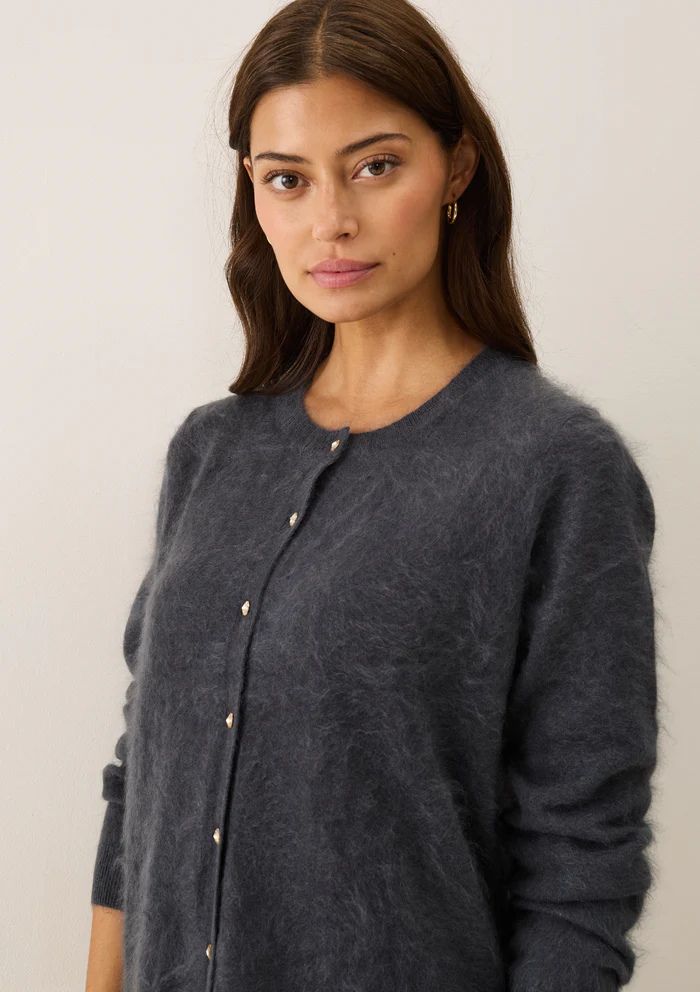 The Brushed Cashmere Cardigan with Jewelled Buttons in Universe Grey is a luxuriously soft knit with an elevated finish. Featuring a classic crew neckline and a row of jewel-like buttons, it balances timeless elegance with a subtle modern edge. The brushed cashmere texture gives it a cozy yet ... Read more refined feel, while the slightly cropped silhouette makes it effortless to style with both denim and tailored pieces.