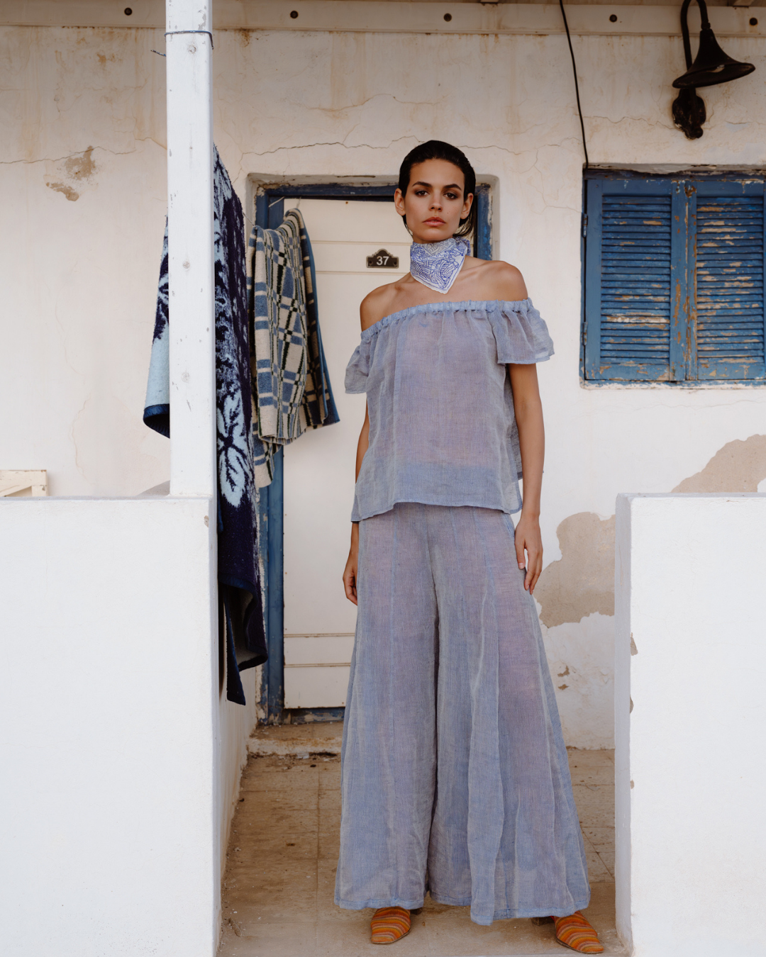 Handwoven Linen palazzo pant with a wide-leg cut and a fluid drape. It's fitted at the waist with an elasticated back for comfort and ease. Light, breathable, and perfect from day to night. Each piece is meticulously handcrafted in the atelier in the South of France, reflecting exceptional ... Read more craftsmanship and artisanal heritage.