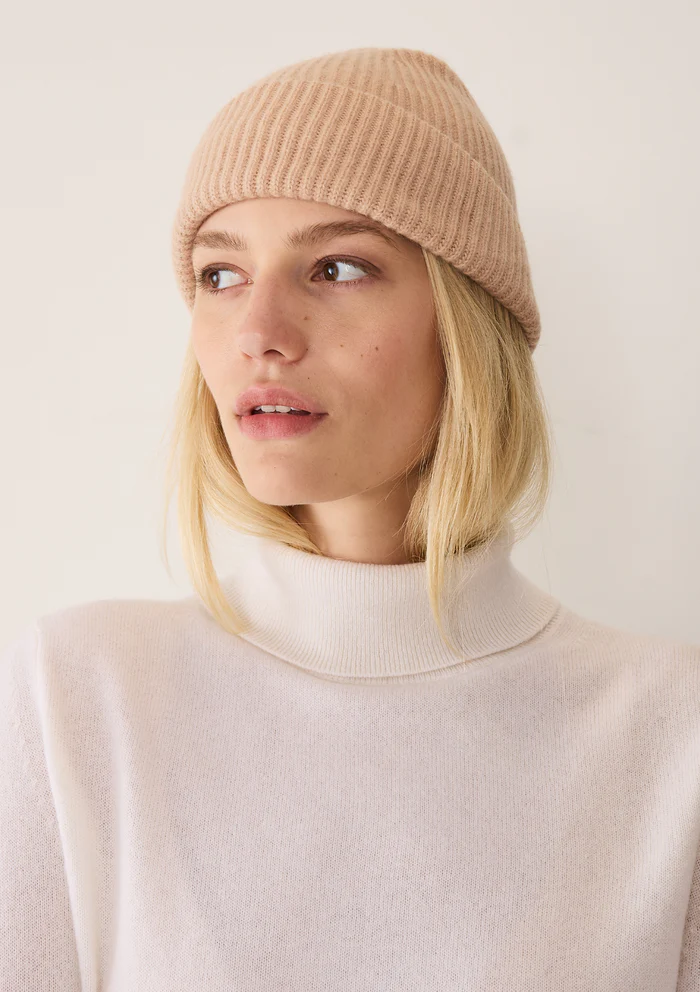 Designed from 100% sustainable cashmere, this beanie hat is available in a choice of stylish shades. Expertly crafted from finest Mongolian cashmere, this beanie has a fold-over cuff and ribbed finish to ensure a snug, cosy fit. Its soft texture and timelessly classic design make it the perfect way ... Read more to sustainable warmth this winter.