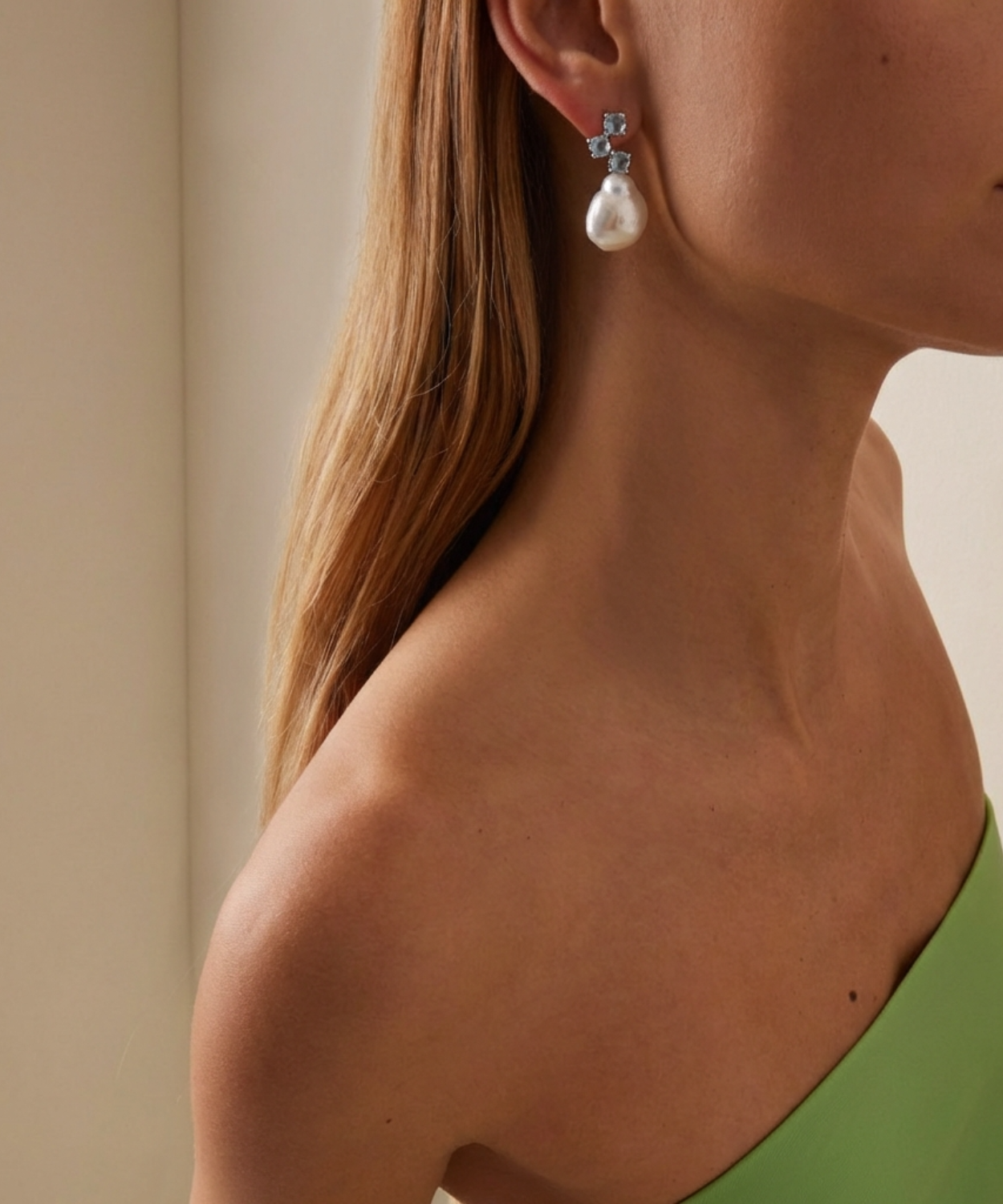 It’s easy to fall in love with these distinctive earrings in White Freshwater Baroque pearl and Sky (pale) Blue Topaz gemstones. In 18k solid gold they’re the perfect accessory to make an elegant statement. Each pair are completely unique. Please note that the size and shape of the natural ... Read more pearls varies with each piece, dimensions are approximate. Please note for hygienic reasons, Maviada's return policy on earrings must be that they are not worn. For our other jewellery, if there is a tag, it must not be taken off, otherwise it may affect your full refund. Upon return, a quality check is done on all jewellery. Any damages or worn jewellery shall not be refunded the full amount. All jewellery must be returned in the original packaging and all returns are at the expense of the client. We recommend always using a reputable carrier with trackable mailings. The jewellery is the full responsibility of the client until we have received the return item and can verify the return.