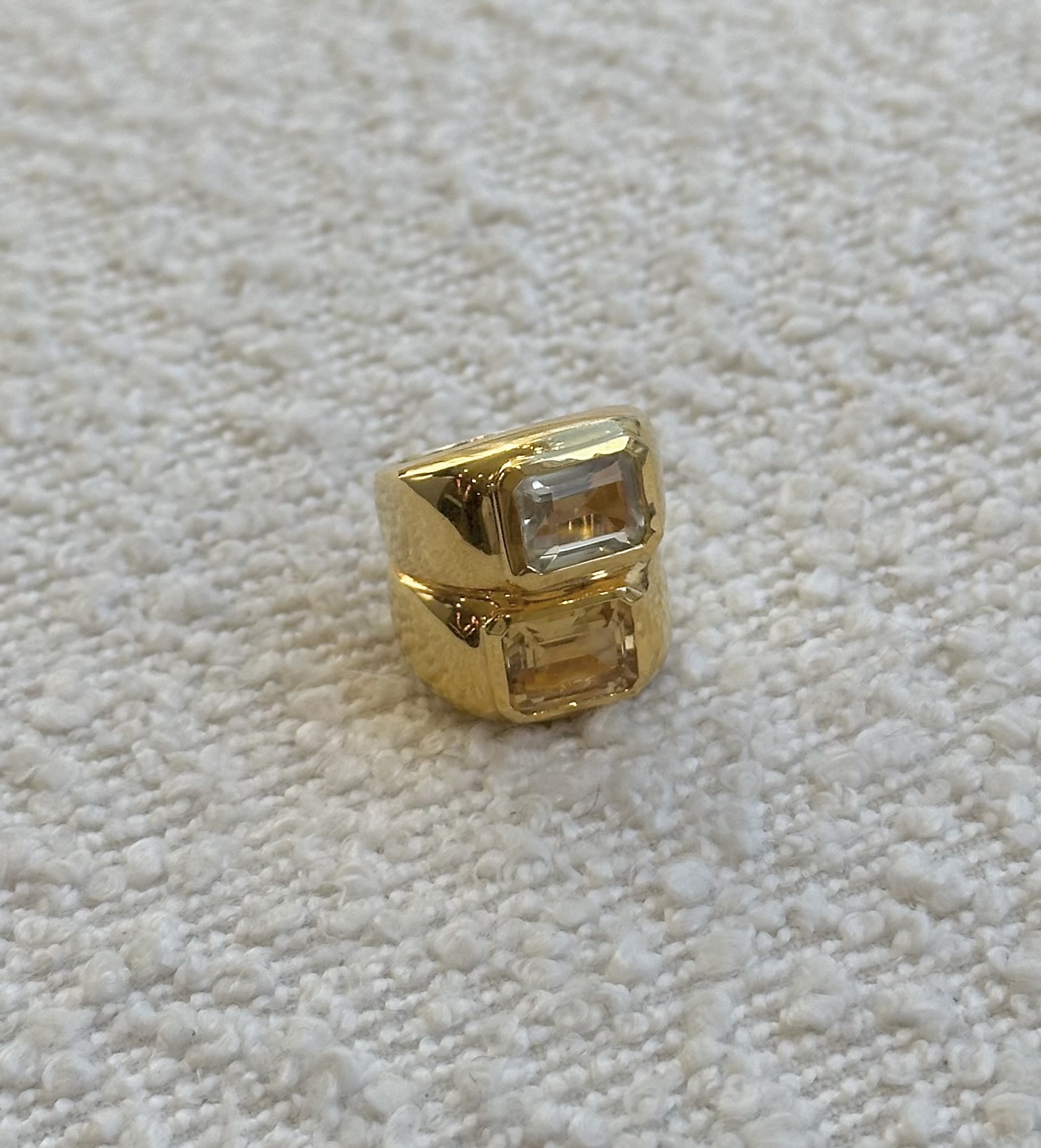 The Twin Ring from Tay Jewellery features stacked Citrine and Green Amethyst that perfectly compliment each other. A statement piece to add to any jewellery collection for day to night. ... Read more