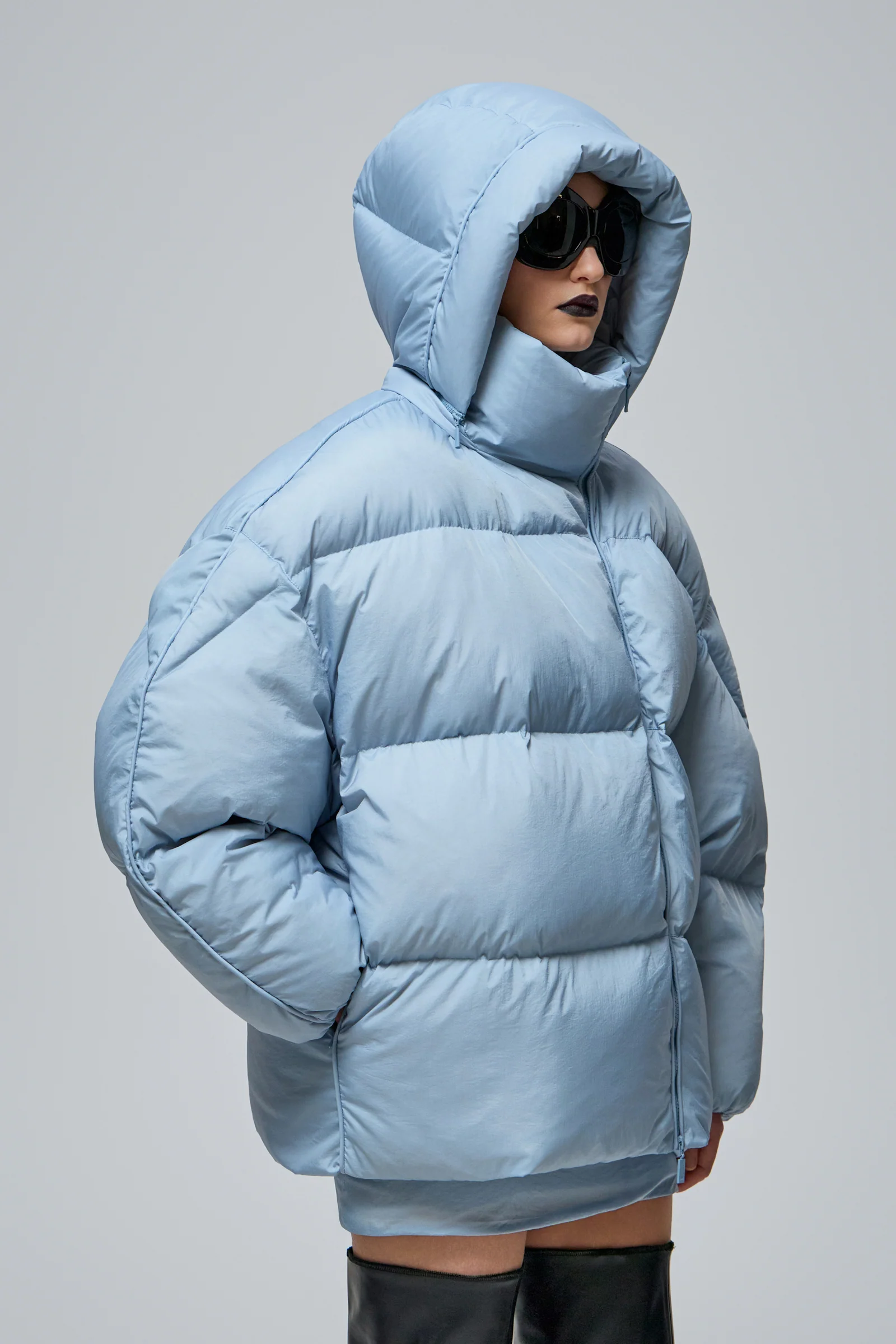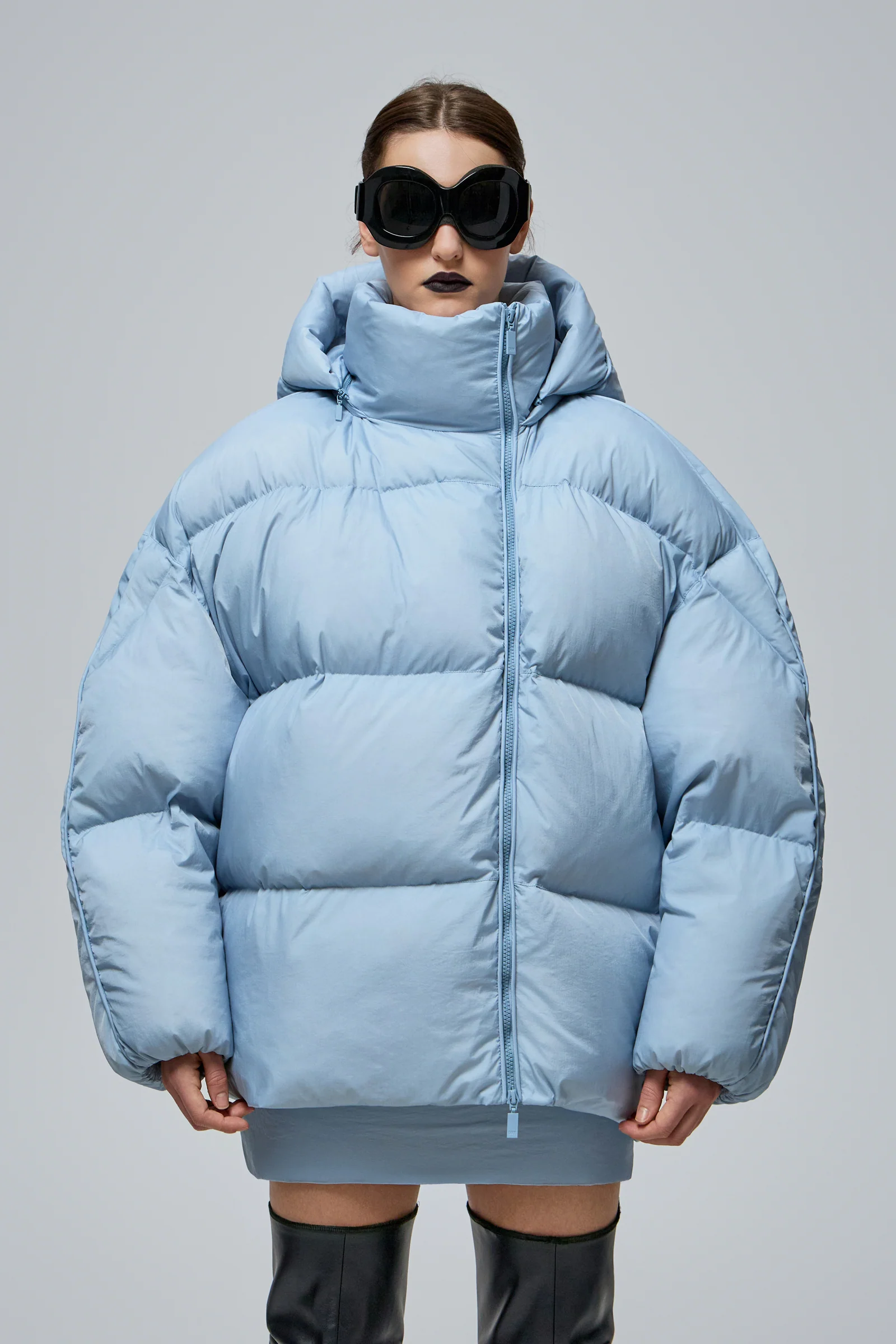 Make a bold winter statement with this oversized sky-blue puffer jacket, crafted with a cloud-like silhouette that balances volume, comfort, and effortless cool. Designed with a high funnel neck and smooth zip closure, it offers maximum warmth while maintaining a sleek, contemporary feel. The soft ... Read more pastel tone adds a fresh pop of colour to cold-weather dressing, making this puffer the perfect blend of standout style and cozy practicality.