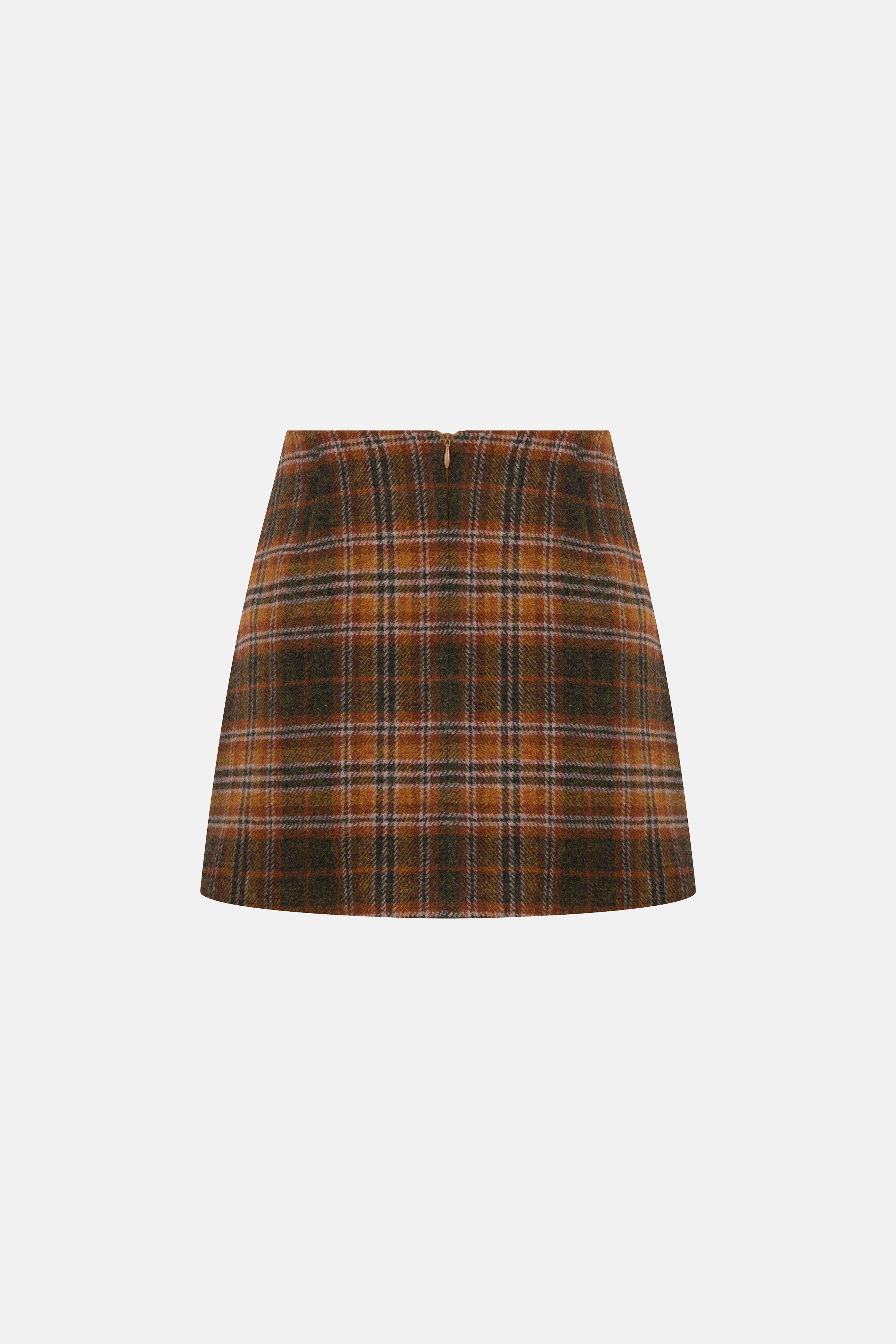 The DREAM MAKER skirt in rich brown checked print is tailored in a structured yet wearable silhouette and crafted from a refined wool‑blend fabric (%80 wool, %20 polyester) for both texture and durability.The timeless check pattern and premium weave make this skirt a versatile piece—perfect when ... Read more paired with a crisp white blouse and loafers for office polish, or styled with a sleek black turtleneck and boots for chic weekend ease. With its subtle sophistication and enduring design, it’s a go‑to for elevated everyday styling.