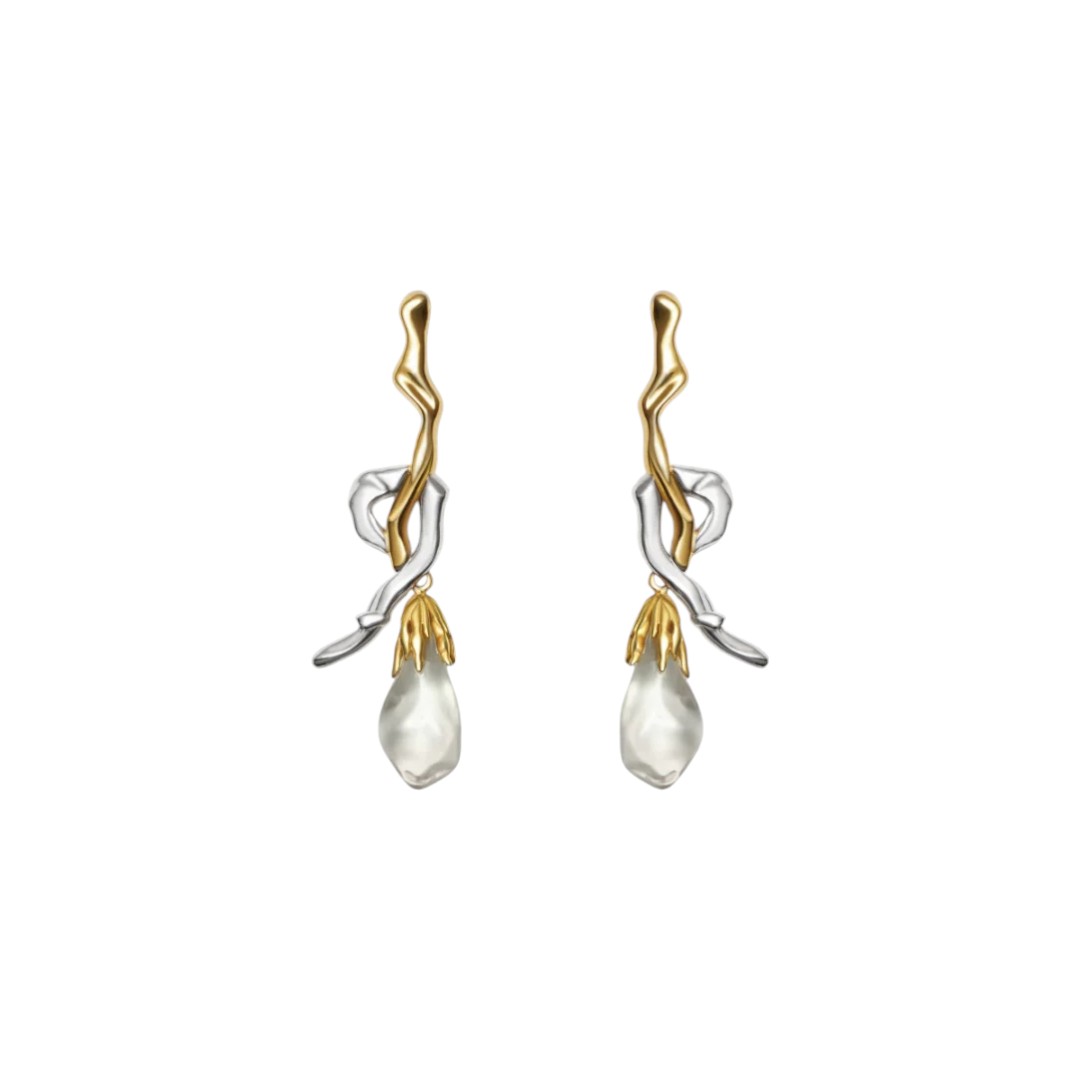 Elara, a striking design of linear elegance, features a sleek 24k gold-plated strand that descends gracefully into a translucent resin drop, cradled by a delicate sterling silver frame. The seamless blend of metals and textures creates a modern silhouette that is both bold and refined, capturing the ... Read more essence of timeless sophistication.