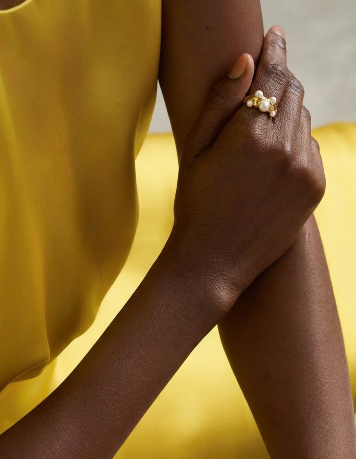 Introducing the 'Five Cities' ring - featuring lustrous freshwater pearls set in 18K Perinni Gold, an innovative and new-to-market material that closely resembles real gold. Each pearl represents one of the five cities that hold a special place in Jess's heart, reflecting a journey from childhood to ... Read more present day. Designed for durability and lasting beauty, the 'Five Cities' ring is waterproof, ensuring it remains a cherished part of your collection through every adventure and occasion. We hope this ring can act as a constant reminder of the places and memories that shape who you are.