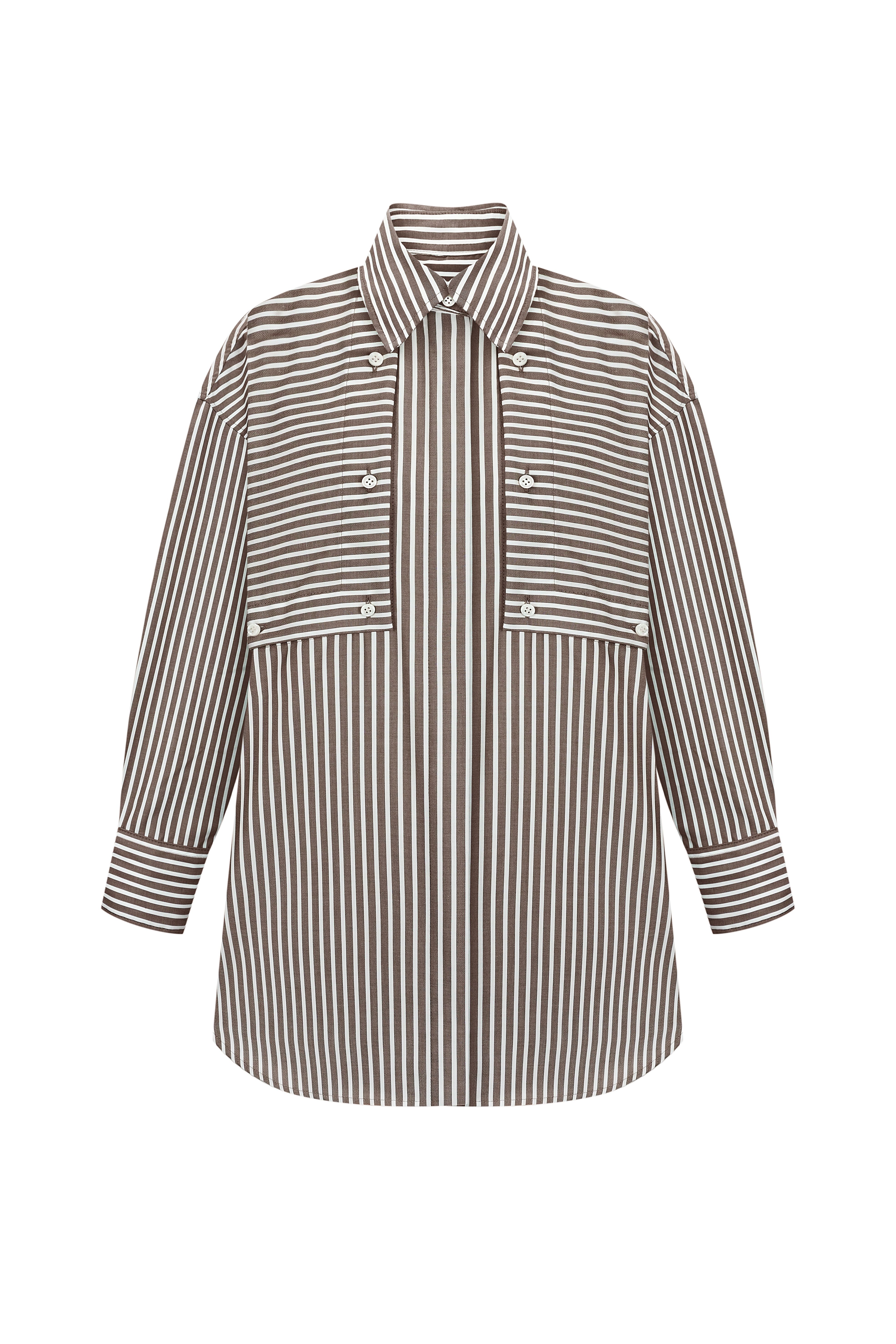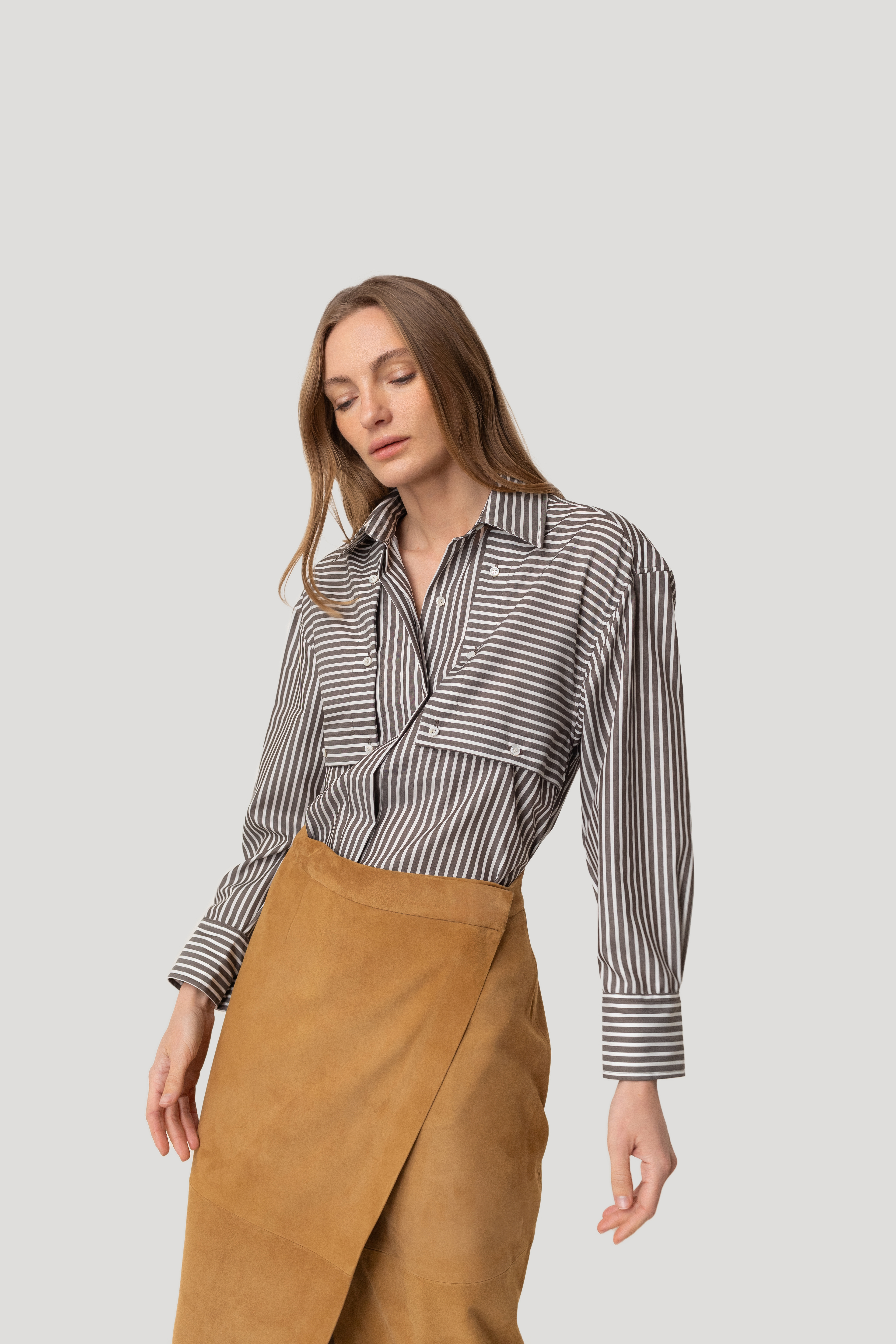 A striped cotton shirt crafted from lightweight, breathable fabric that stays naturally polished throughout the day. Mother-of-pearl buttons add a refined touch, while the crisp striped pattern brings a timeless, elevated feel. A versatile wardrobe essential with a clean, modern silhouette — ... Read more effortless, stylish and endlessly wearable.