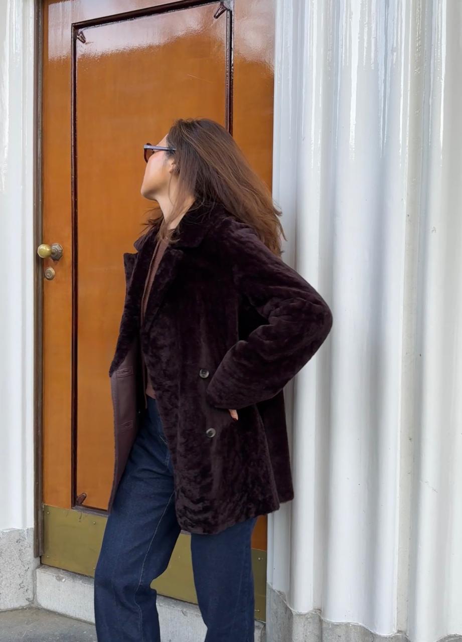 Meet the Harmony Coat in Bordo — a richly textured shearling piece that brings warmth, elegance, and modern luxury together in one beautifully crafted design. Its deep bordo hue offers a sophisticated pop of colour, while the plush shearling adds irresistible softness and structure. Designed with a ... Read more relaxed yet refined silhouette, it features a wide lapel collar, double-button closure, and smooth interior detailing for a polished finish. Effortless to style and incredibly cozy, the Harmony Coat is the perfect statement layer for elevating everyday looks through the colder months.
