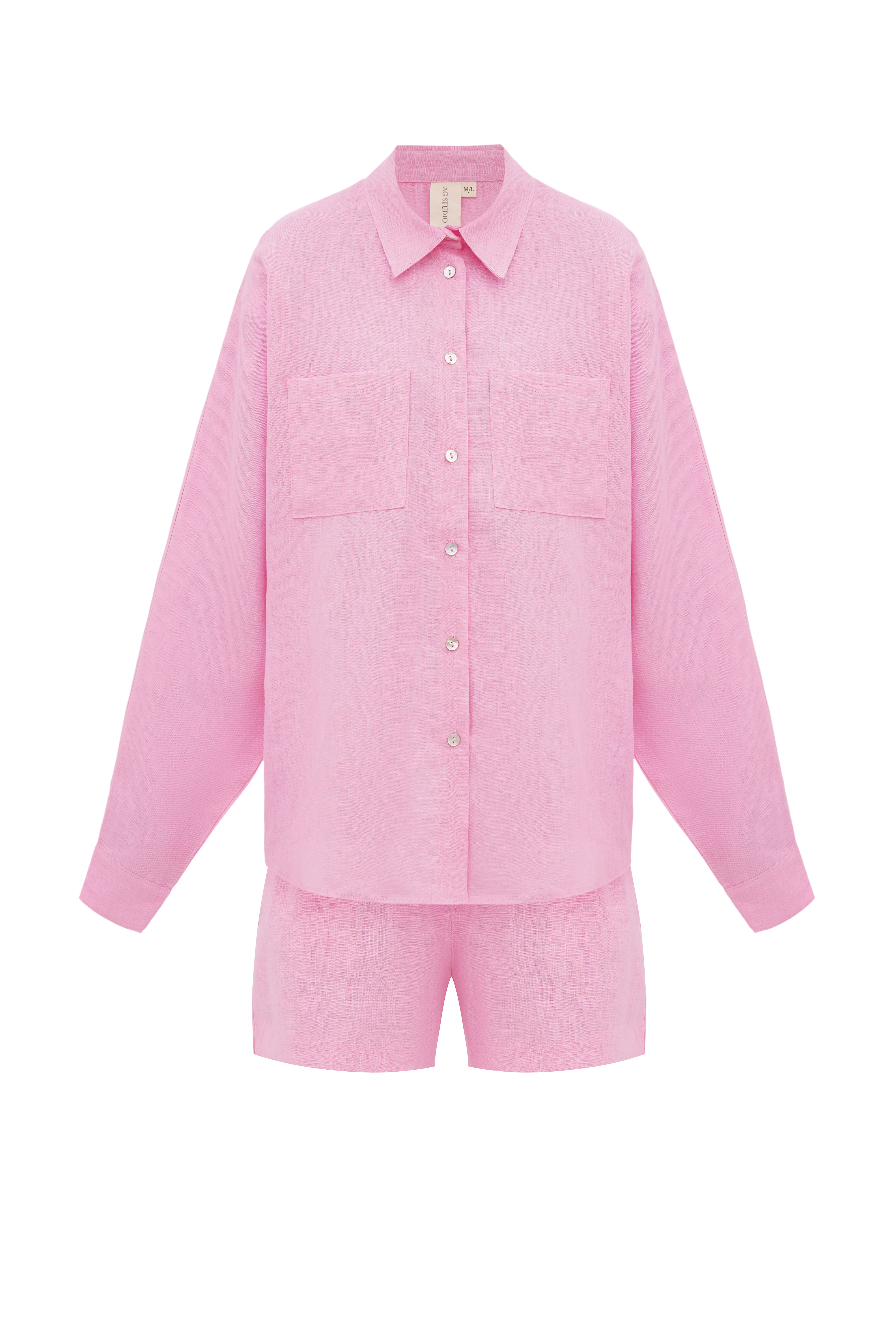 Indulge in the luxury of pure linen in baby pink with our Havana Set, expertly fashioned from 100% premium linen fabric. Known for its exceptional breathability and sumptuous texture, linen ensures unparalleled comfort while exuding a timeless allure. Each button, sourced from the depths of the ... Read more ocean, adds a touch of opulence and refinement, elevating the Havana Set to a true sartorial masterpiece.The model wears size 10-12 and her height is 180cm. |Please Note - Made to order pieces can take around 10-12 days to be produced. Contact us for further information.|