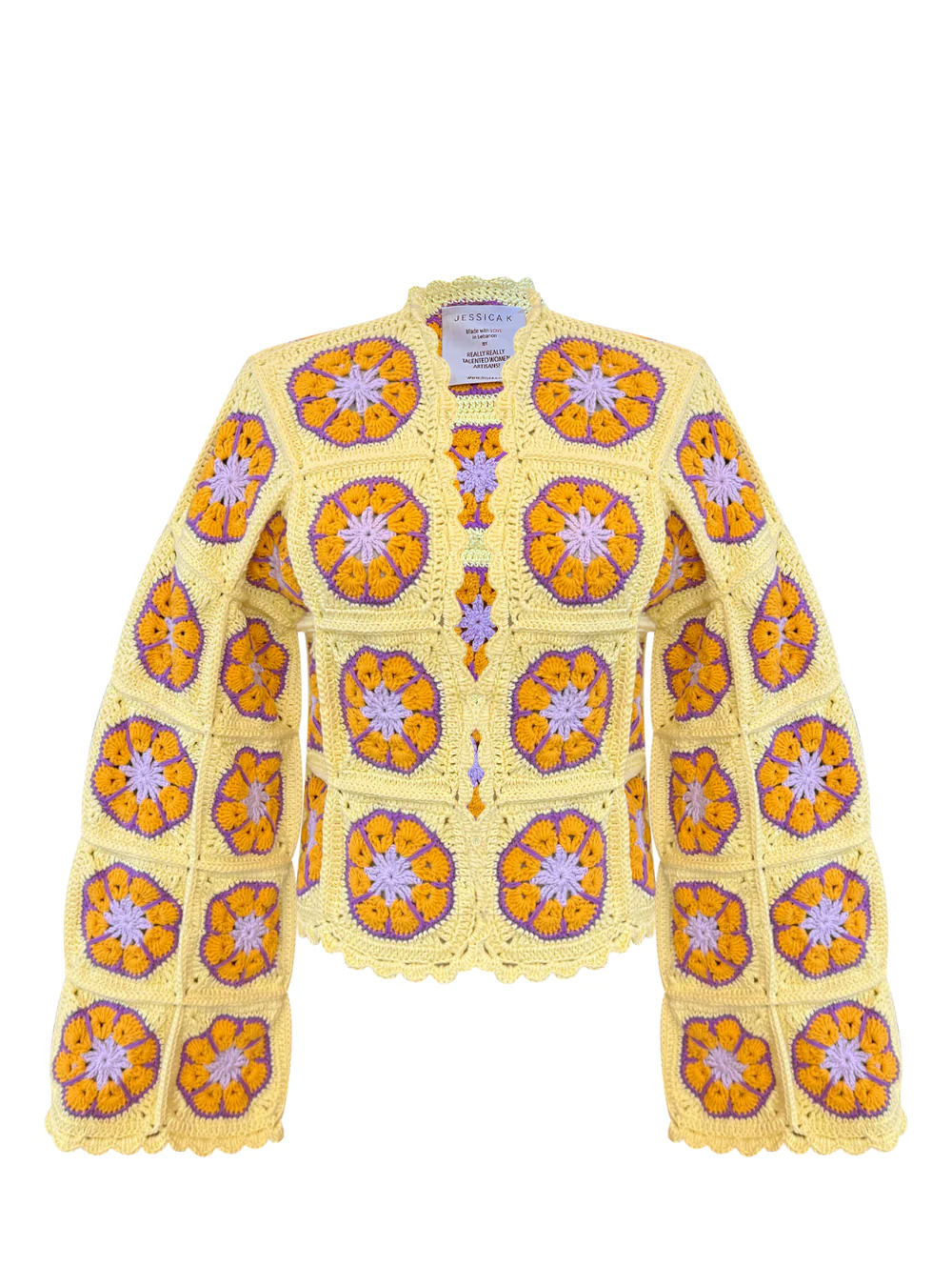 A handcrafted statement jacket made from premium Class A cotton. Featuring a textured floral knit inspired by sunshine, this artisanal piece is hand-knitted by skilled Lebanese artisans. Designed for effortless layering, it blends timeless craftsmanship with modern elegance. ... Read more