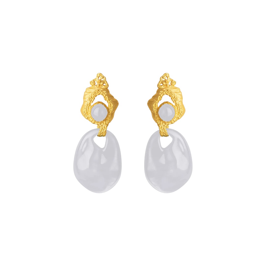 The interchangeable Gravel Earrings are a union of smooth, rough, matte and shiny. With a sculpted resin stone that can easily be removed and re-attached, the top half of the earring hooks onto the stone and travels up the ear into an irregular granulated ring. Secured with surgical steel posts and ... Read more butterfly earring backs.