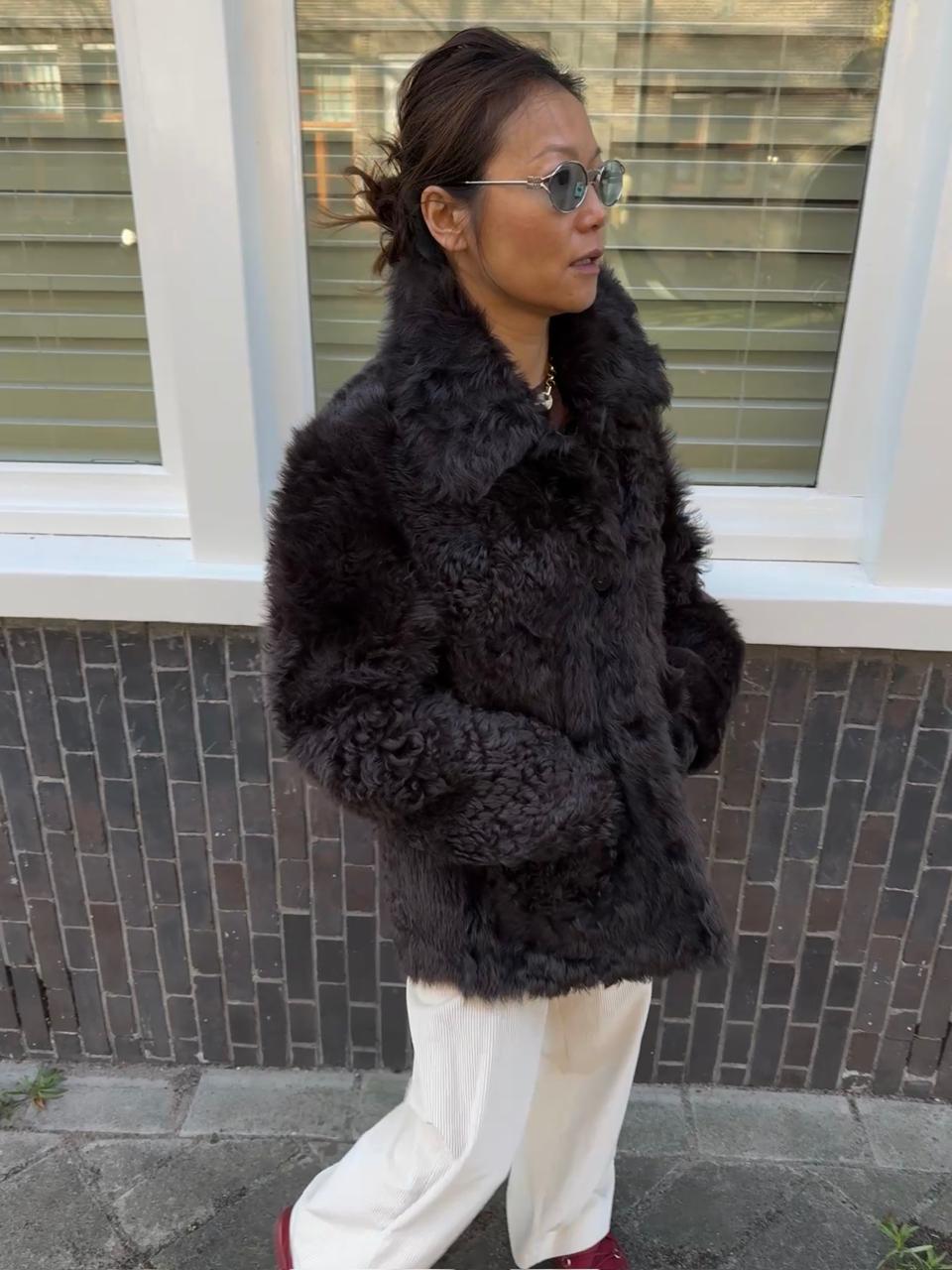 Wrap yourself in effortless luxury with the Isabelle Shearling in Brown — a rich, plush statement jacket crafted for warmth, texture, and timeless style. Made from ultra-soft shearling, it features a beautifully structured silhouette with a classic collar, button closure, and deep front pockets that ... Read more add both comfort and practicality. The deep brown hue brings a sophisticated, winter-ready feel, while the natural curl of the shearling adds dimension and character to every look. Pair it with tailored trousers, denim, or knitwear for a cozy yet elevated cold-weather ensemble. This is the ultimate throw-on piece that makes everyday dressing feel indulgent.