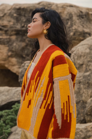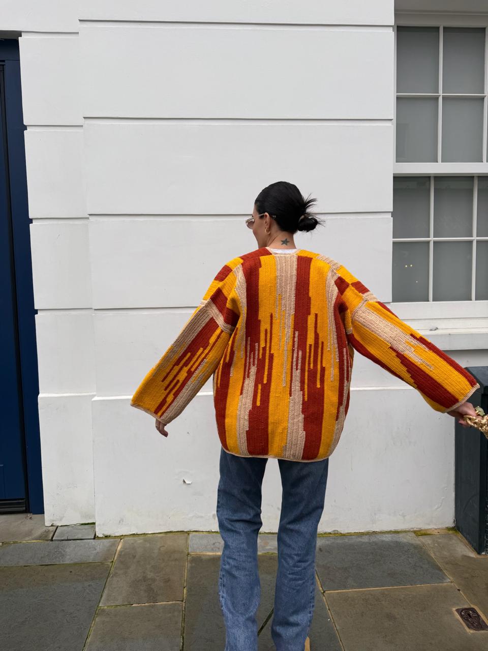 The Jade Jacket in Brick/Gold/Mustard from Jessica K is a handcrafted, artisanal striped jacket that showcases the brand’s dedication to knitwear and heritage craftsmanship, made with Class A cotton and golden silk threads and produced in Lebanon. Designed with love and attention to detail, this ... Read more statement piece blends rich, warm tones of brick, gold, and mustard into a luxurious yet versatile outer layer that elevates any outfit.