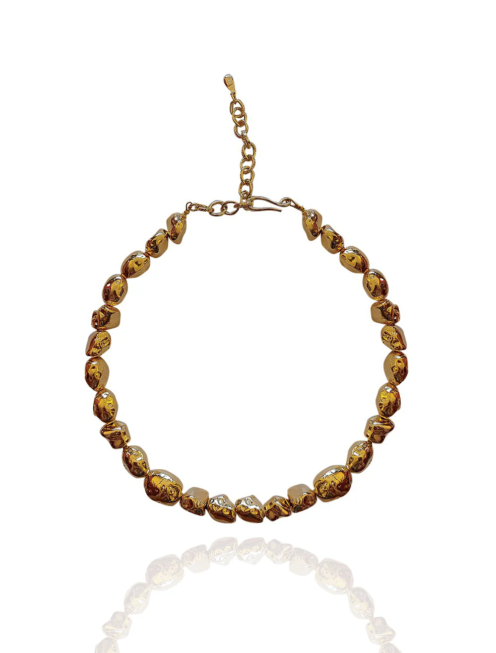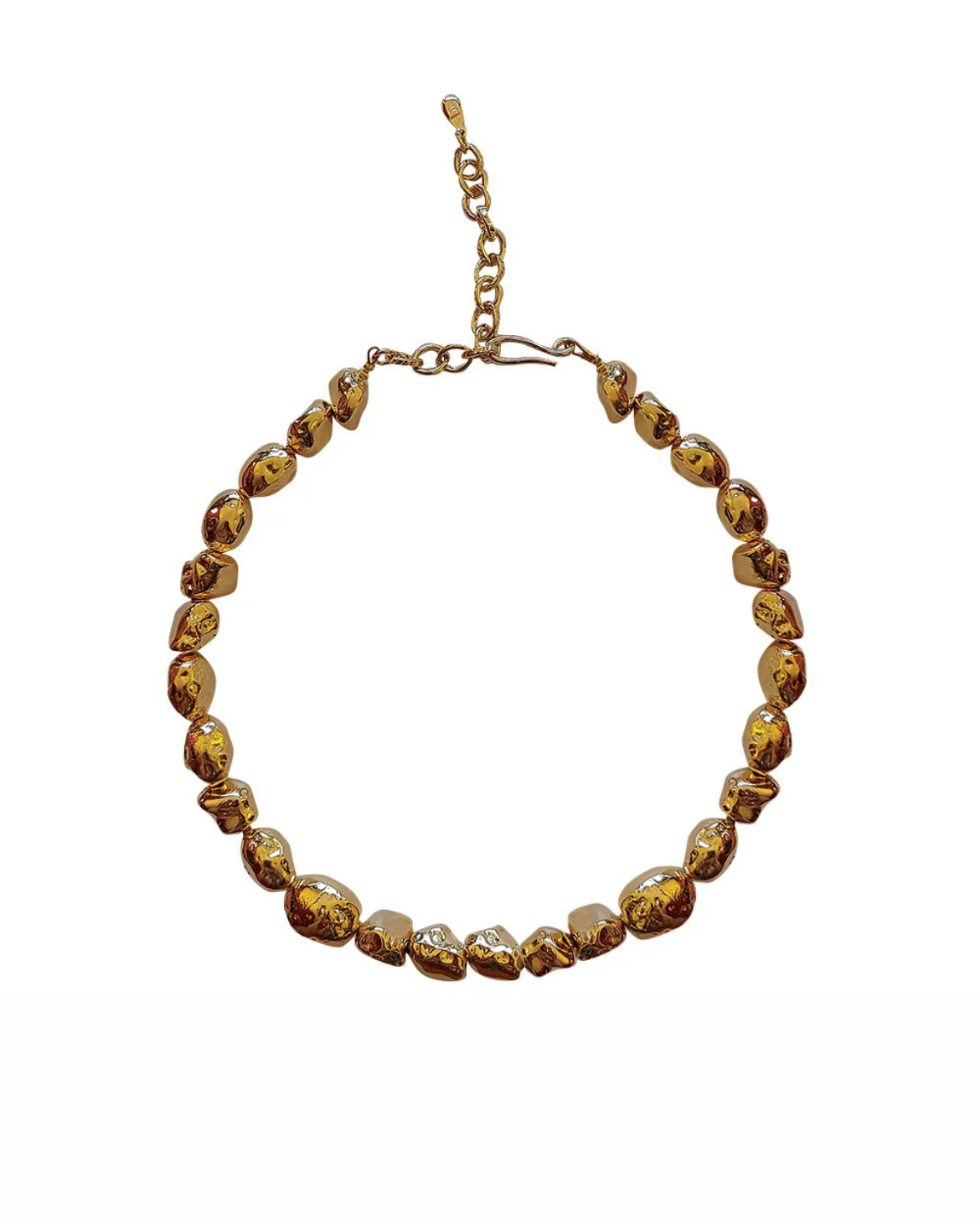 Add a touch of elegance with this delicate gold plated stone necklace to enhance all your summer outfits. ... Read more