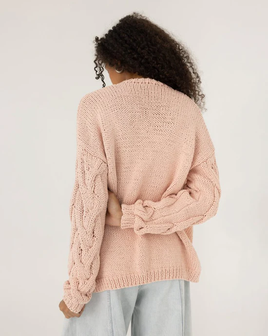 Soft, cozy, and effortlessly chic — the Kovas Dusty Pink Cotton Cardigan brings warmth and style together in perfect harmony. Crafted from 100% breathable cotton, this relaxed-fit cardigan features chunky cable-knit sleeves that add a touch of texture and charm to its minimalist silhouette.The ... Read more open-front design makes it an easy layering piece for any season, throw it over a camisole, crop top, or dress for a casual yet feminine look. Its dusty pink hue adds a subtle romantic touch, making it a versatile wardrobe essential for laid-back days or cozy evenings.