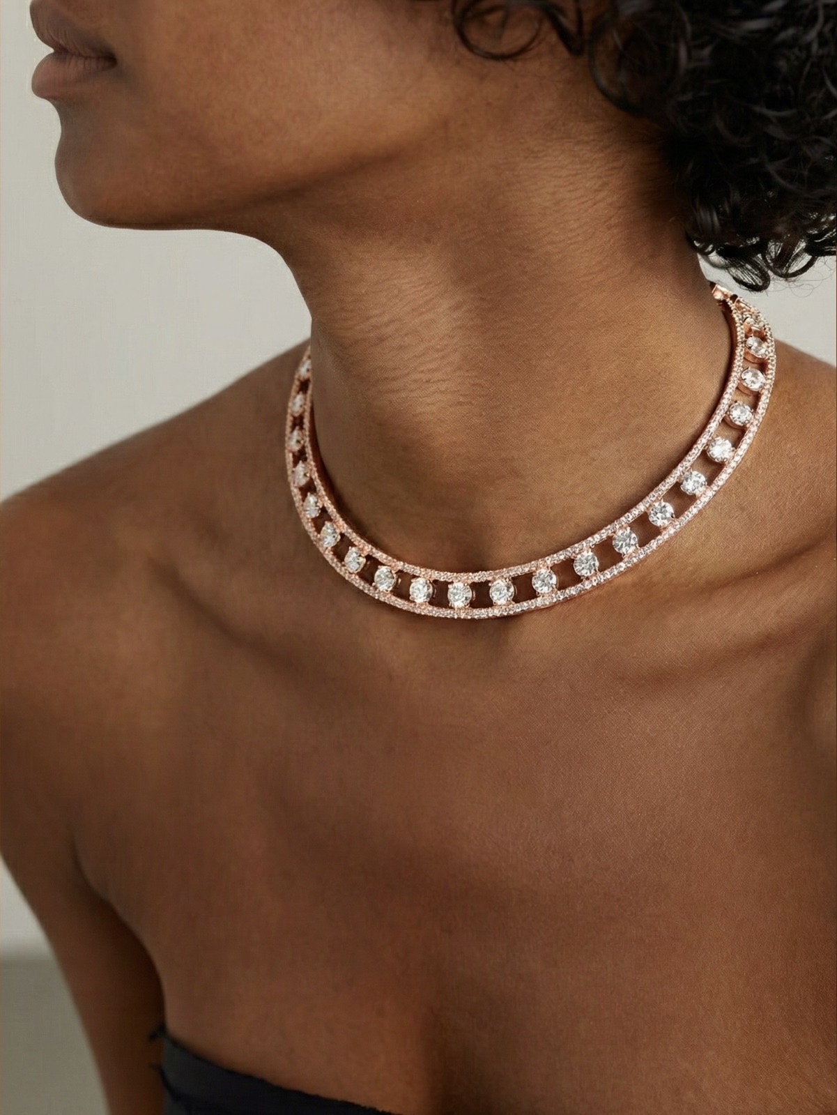 Inspired by the vintage style, this choker has large stones spaces equally between two chokers to create a stunning piece of jewellery! It adds a touch of old glamour to your outfit. ... Read more