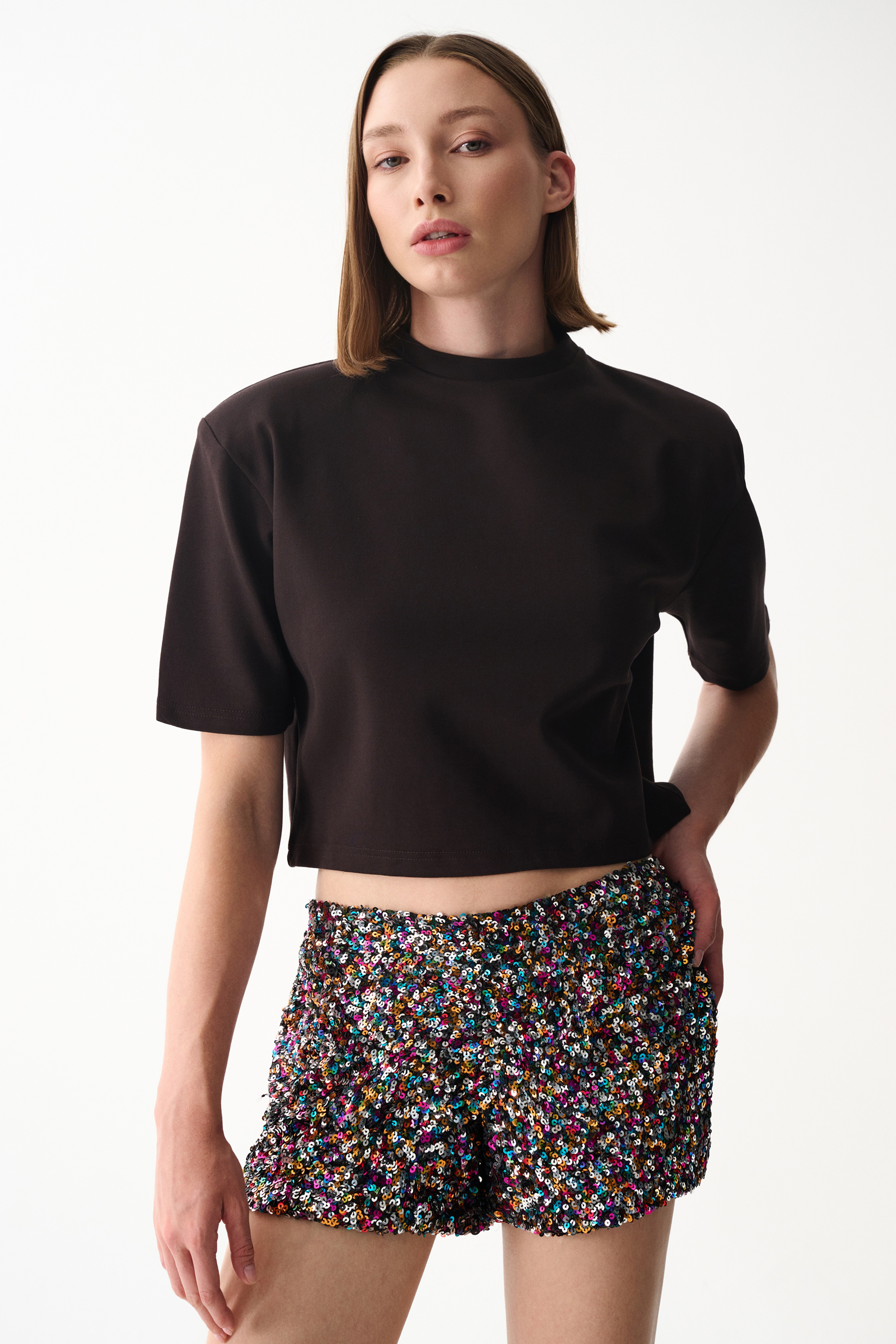 The Miu T-Shirt redefines everyday essentials with a minimalist, structured silhouette. Crafted from premium cotton, it features a high neckline, boxy fit, and cropped length for a modern edge. Effortlessly balancing comfort and sophistication, this piece pairs perfectly with tailored trousers, maxi ... Read more skirts, or statement separates for a sleek, elevated look.