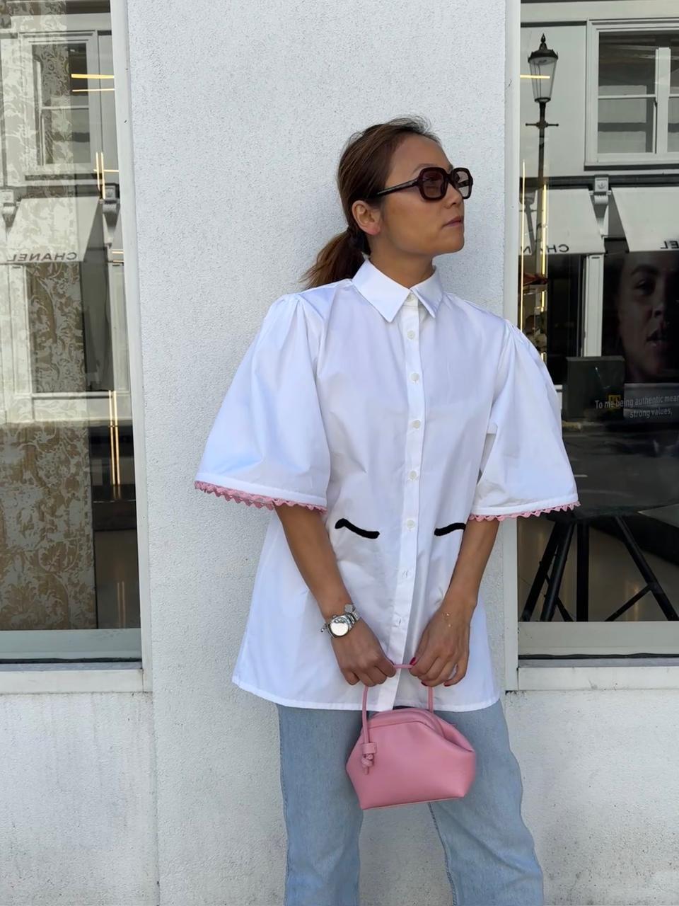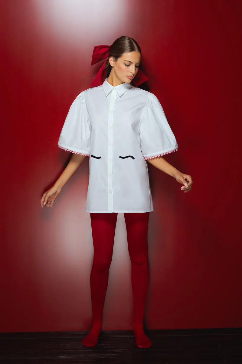 Whimsical, elegant, and a touch playful, the Little Dumbo Shirt by Salim Azzam is a delightful addition to any wardrobe. This hand-embroidered masterpiece features short balloon sleeves with structured hems, adorned with pink crochet detailing. The regular collar and visible buttoning tab add a ... Read more classic touch, making it versatile for various occasions. Care Instructions: Dry clean only to preserve the integrity of the materials.
