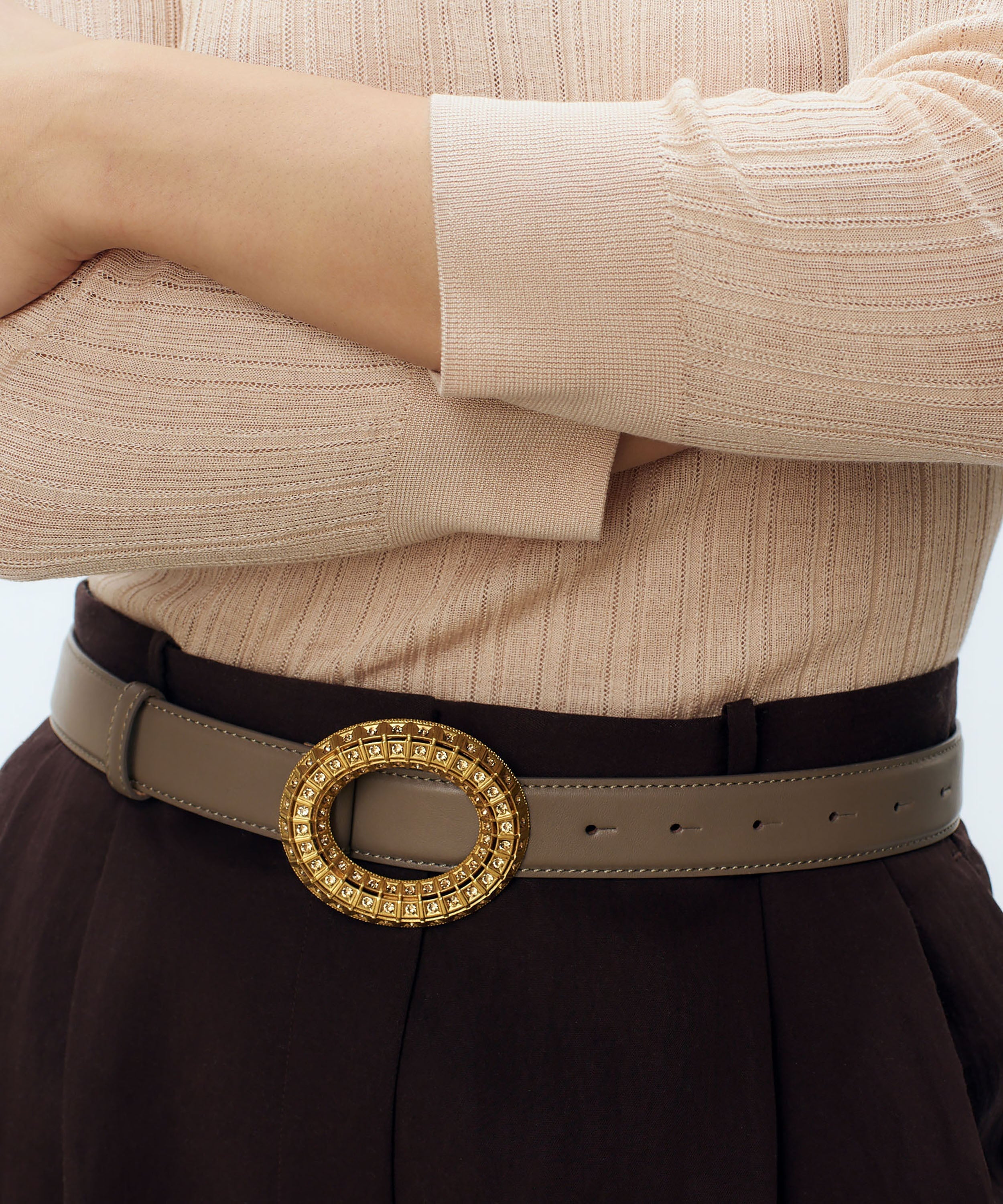 A study in texture and allure, the Lobster Vibe capsule explores the sculptural power of Sonia Petroff’s iconic lobster symbol by adopting its grid-like structure as a motif. It is a collection that feels instinctive, elegant and unmistakably modern. The Lobster Vibe belt buckle is constructed in an ... Read more oval shape, featuring an iconic open grid design wrought in brass with 24k gold overlay. It plays with texture and light to elevate even the most understated silhouette. The piece is set with golden Swarovski crystals and mounted on Italian leather.