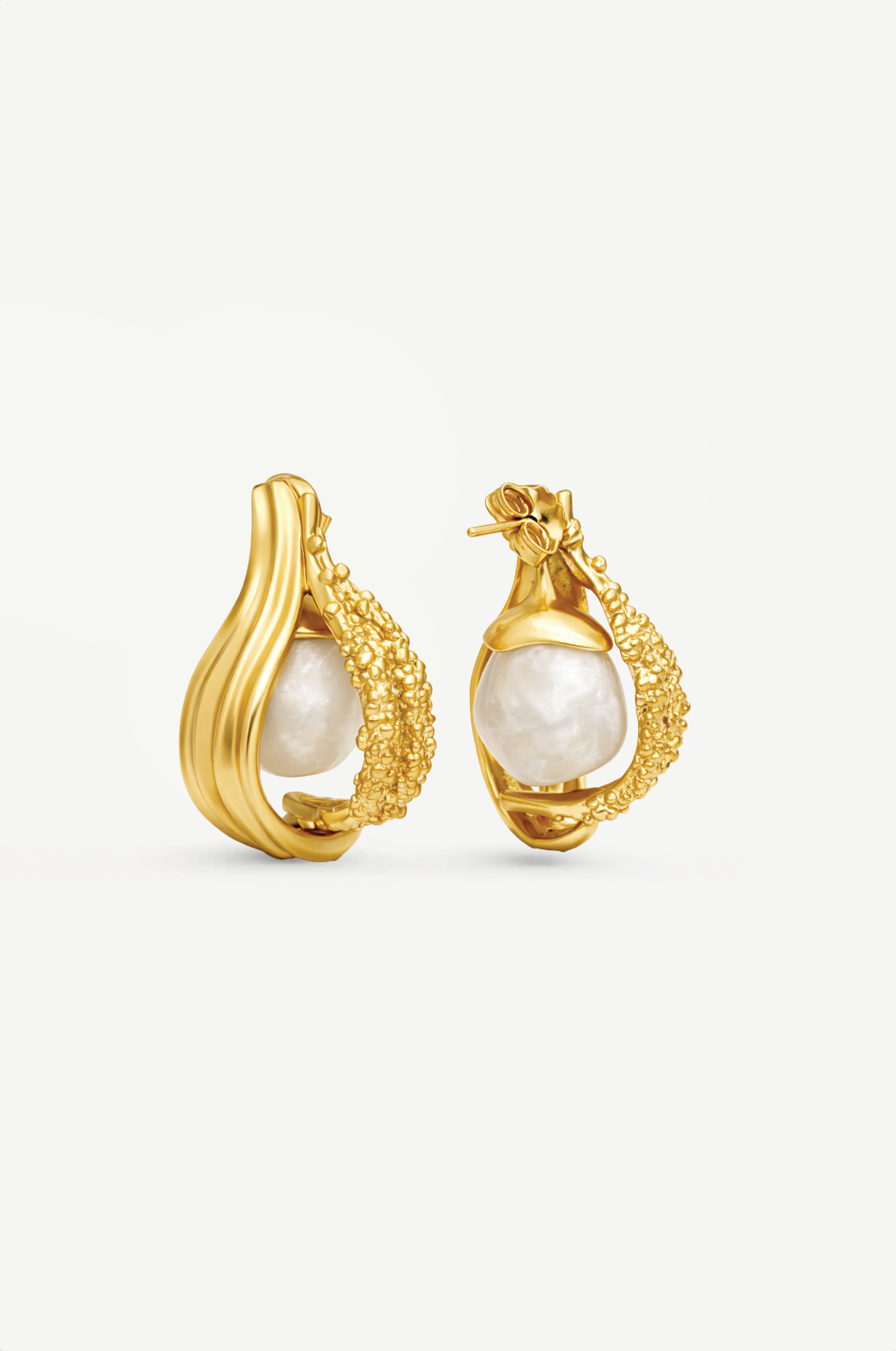 An elongated hoop, gently stretched by motion. The removable resin element allows the form to shift from a clean, sculptural line to a more expressive composition. Interchanging the resin introduces new variations, redefining the piece with subtle changes. ... Read more