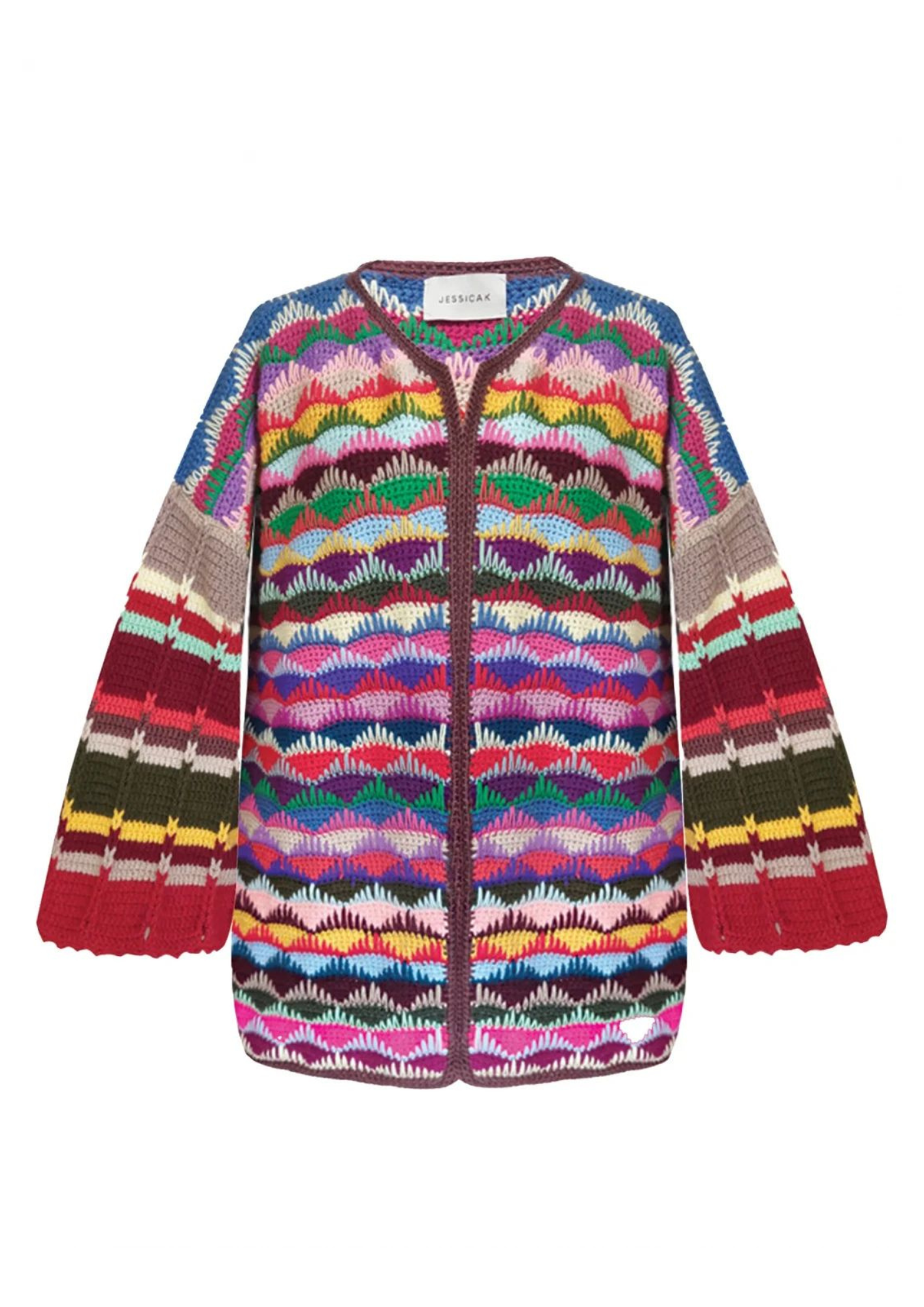 Introducing the Mahala Jacket, a masterpiece born from the hands of skilled artisans in Jessica K's Beirut atelier. Crafted with love, each piece is a testament to exquisite hand-knitting. The bold geometric design makes you stand out from the crowd, making a statement that transcends ... Read more fashion.Complete the look by pairing the jacket with the Mahalah skirt. / To customise the colour and size, please get in touch with us and specify in order notes. Takes around 4 weeks /