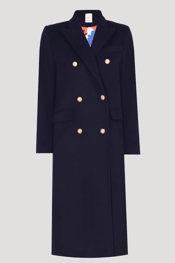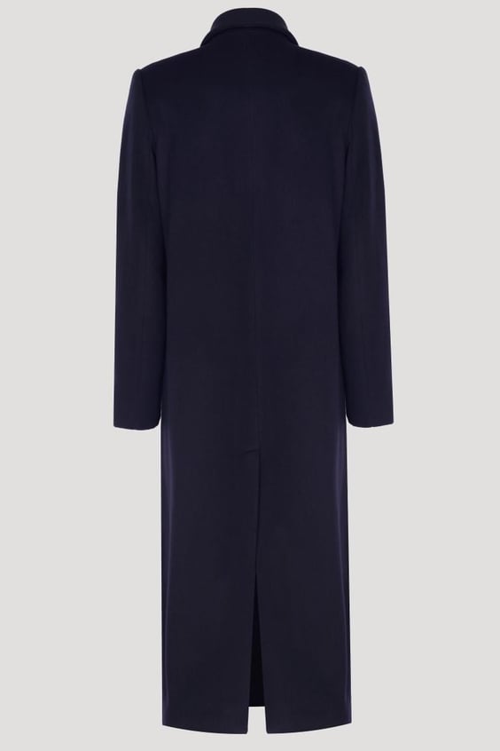 A timeless double-breasted coat in rich dark navy, with six-button detailing and a structured silhouette, this coat is designed to move effortlessly from day to night — whether layered over a jacket or worn on its own. Made from 80% wool and 20% polyamide, with a 100% viscose lining, it offers ... Read more warmth and polish while keeping a clean, versatile cut. True to size and made for a wardrobe staple that blends sophistication with practicality.