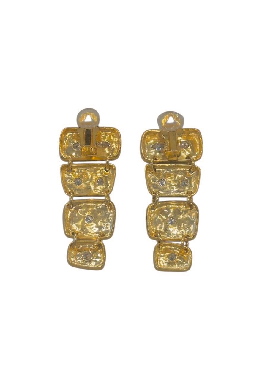 The Mini Auris Clip-on Earrings distill modernist elegance into a more delicate silhouette. With molten-gold panels linked in a fluid cascade and adorned with luminous strass, they offer a sculptural yet subtle statement. ... Read more