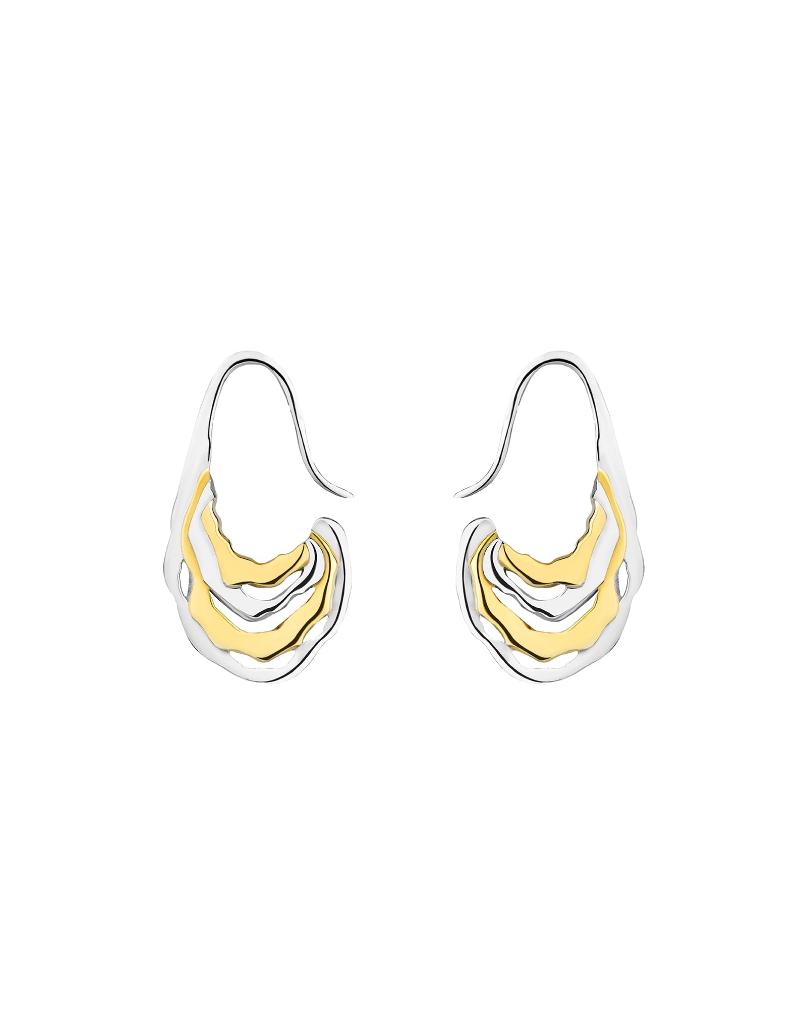 The Mini Sahara Mix Hoop has alternating silver and gold-plated silver layers named after the only desert seen from outer space, expresses the contours of the Saharan desert dunes in irregular lines that snake down into a small, oval hoop. Worn with a wire post that ensures the hoops are always ... Read more streamlined and secure, the Mini Saharas are an essential staple.
