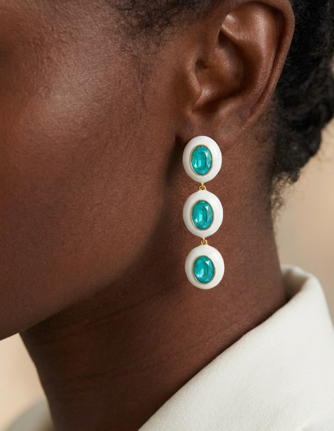 Designed for those who dare to be different, the Morel Earrings offer a bold and stylish statement that is sure to turn heads wherever you go. The combination of striking aqua stones and delicate enamel detailing adds a touch of sophistication to these playful earrings. For added versatility and ... Read more convenience, these earrings come with clip-on closures, making them suitable for both pierced and non-pierced ears. Whether you're dressing up for a night out or adding a touch of personality to your everyday look, the Morel Earrings are sure to make a lasting impression.