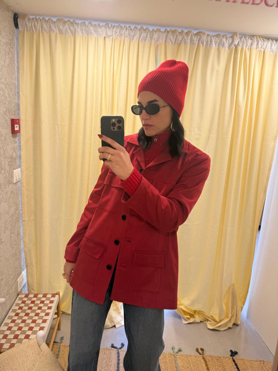 The Nix Jacket Suede Red is a bold utility-inspired outer layer in a vibrant red suede finish, featuring a relaxed oversized silhouette with functional four-pocket detailing for everyday ease. Crafted from a structured yet comfortable blend of materials with a smooth polyester lining, it balances ... Read more practicality with standout style, making it a versatile choice for layering over both casual and elevated looks. With its striking colour and thoughtful design, this jacket adds a touch of effortless cool to your wardrobe staples.