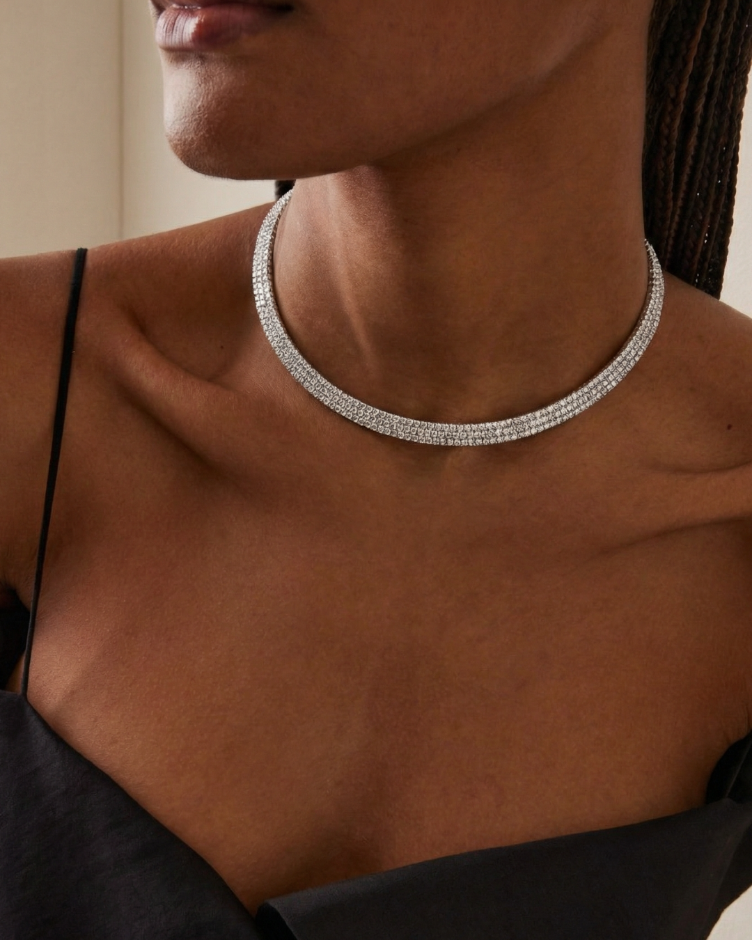 The Obsidian choker is a beautiful white choker with three rows of zirconi, shaping it around your neck. One of a kind, this choker will bring light to any outfit you wear. ... Read more