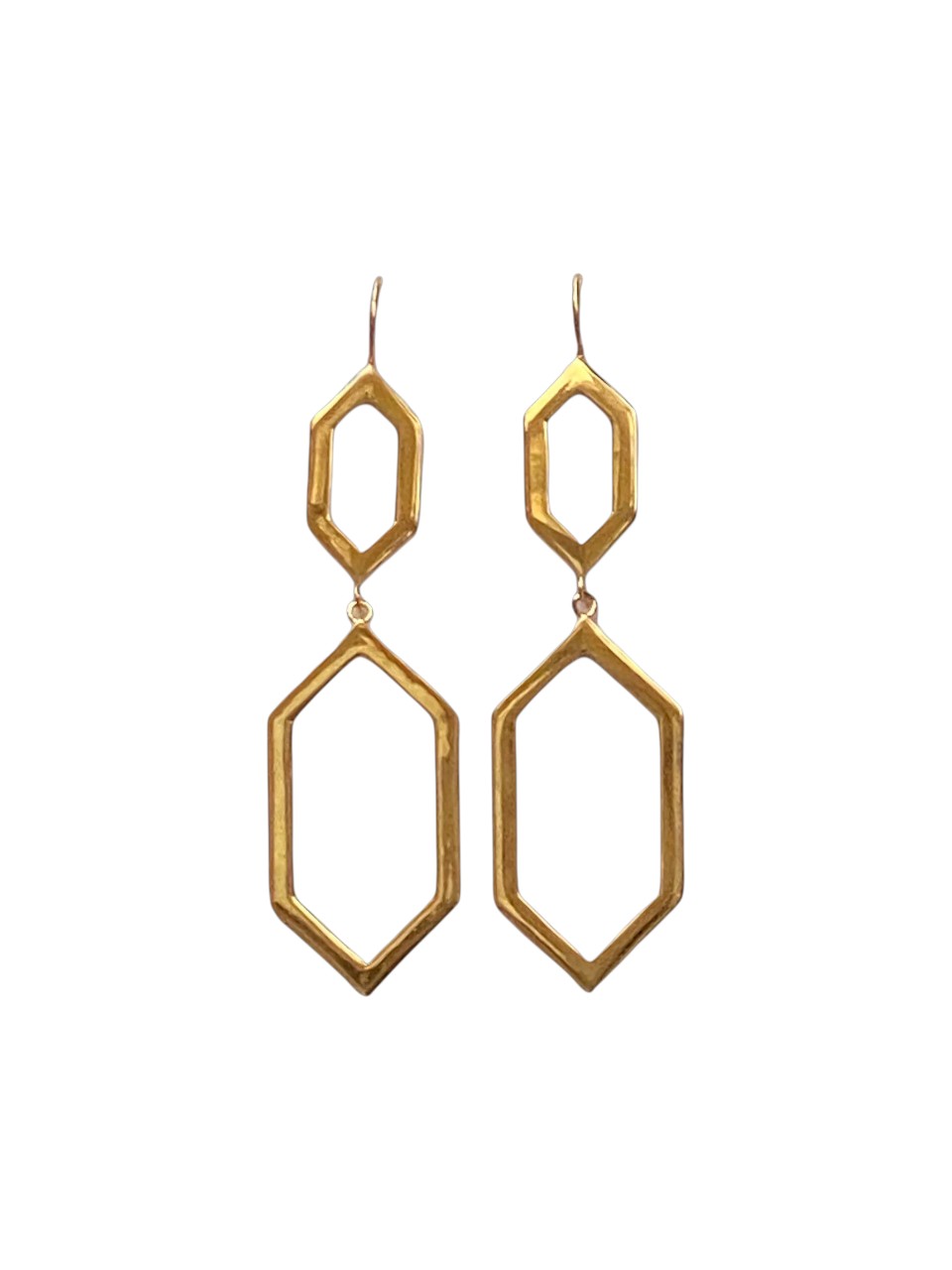 Elevate your look with these elegant Ottoman two-panel eardrops, featuring a sleek double-tiered silhouette that gracefully sways with every movement. Designed with refined geometry and a polished finish, these earrings effortlessly blend modern sophistication with timeless charm. Perfect for adding ... Read more a statement of understated luxury to both everyday ensembles and special-occasion outfits.