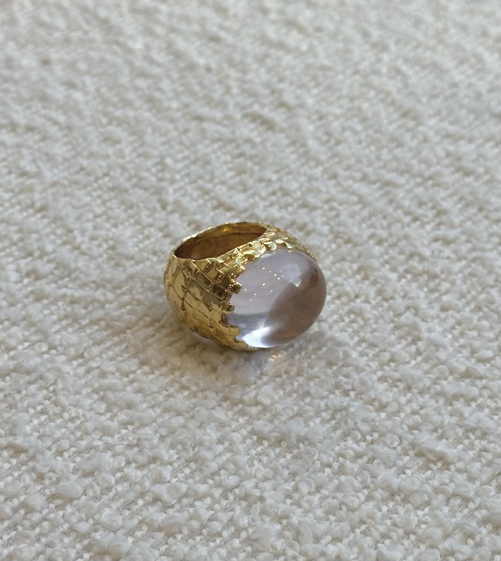 Claw Set with a large Pale Amethyst, the Tile Ring is a fabulously striking piece focused on a beautiful stone highlighted by the slightly bulbous claws. ... Read more