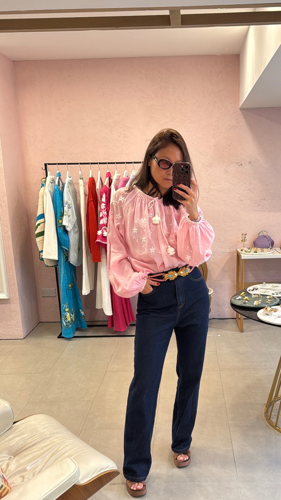 Handmade with love from Ukraine, the Pearl Blouse in pink is decorated with intricate white floral shapes and hand embroidered delicately with natural pearls. It features button fasteners along the entire length with tassel ties on the neckline. The perfect linen blouse addition to your wardrobe for ... Read more the warmer seasons.