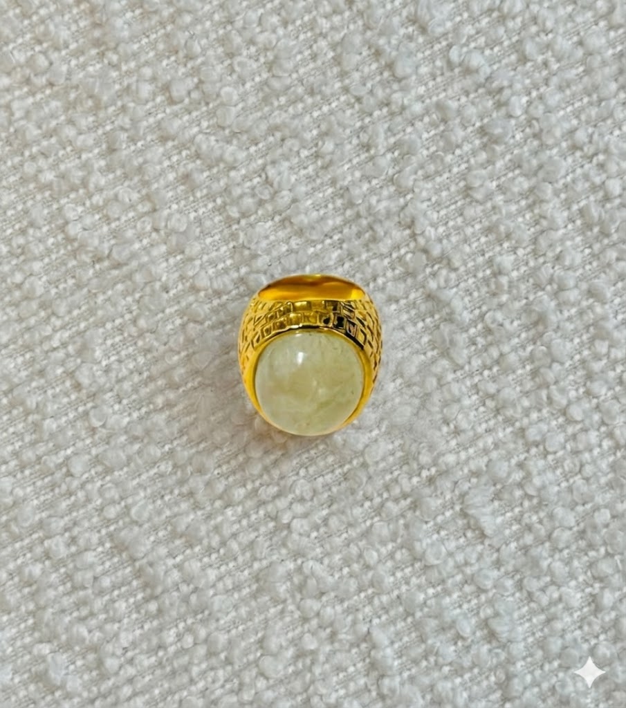 Set with a large oval cabochon Prehnite, the Prehnite Set Chiselled Ring is an elegant & bold ‘statement ring’ - perfect for day or night wear. ... Read more
