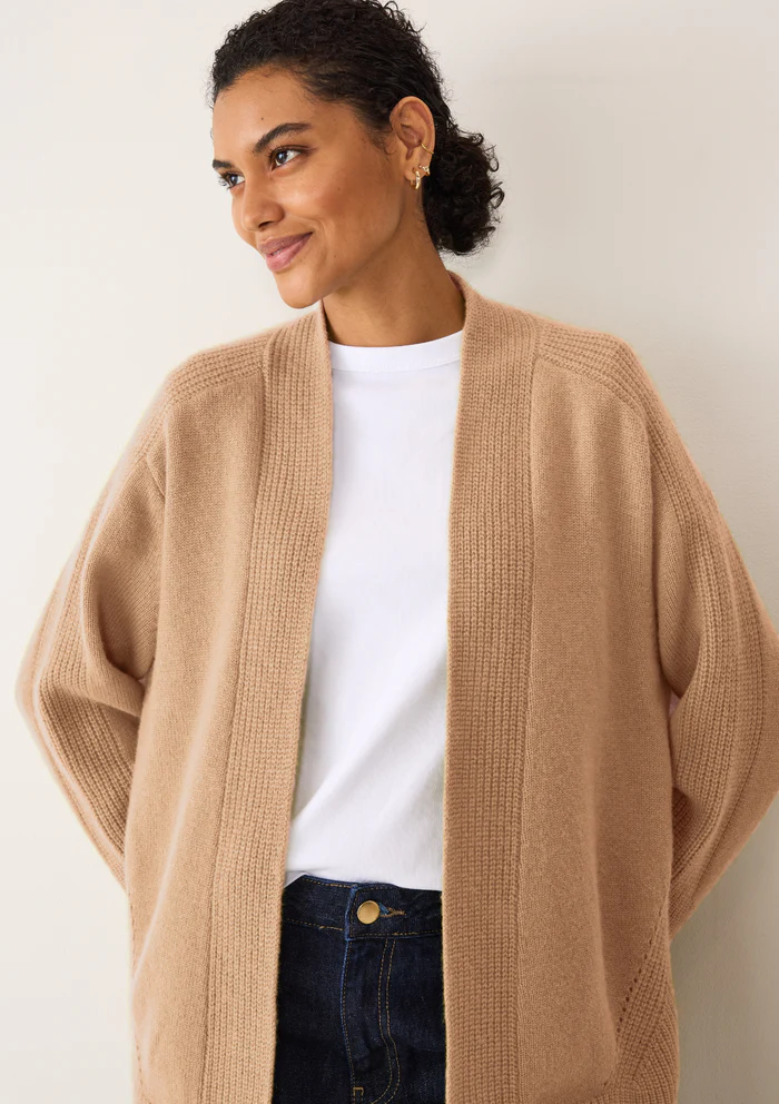 Effortlessly stylish, Loop Cashmere's Edge to Edge Cashmere Cardigan in Toffee, is the perfect way to layer up on cooler days. With deep ribbed trims, all over textured knit and ribbed detailing to sleeves and centre back, it's a style that elevates any outfit. Supremely soft and light with ... Read more knuckle grazing sleeves that can be folded back, pushed up or left long.