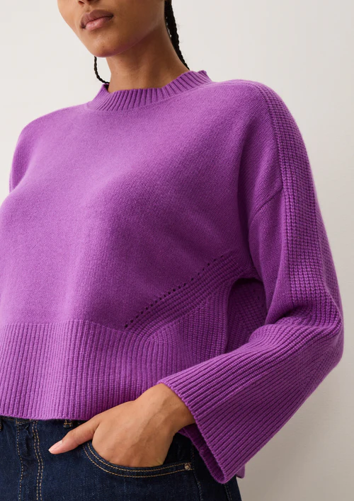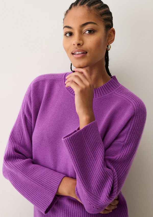 A bold pop of colour for effortless everyday style. The Vibration Purple Sweatshirt is crafted from a soft, mid-weight knit that feels cosy yet breathable. Designed with a relaxed, boxy silhouette, it features dropped shoulders, a ribbed crew neckline, and wide rib trims at the cuffs and hem for a ... Read more contemporary touch. The vibrant purple hue adds energy and sophistication—perfect for pairing with denim or tailored trousers alike.