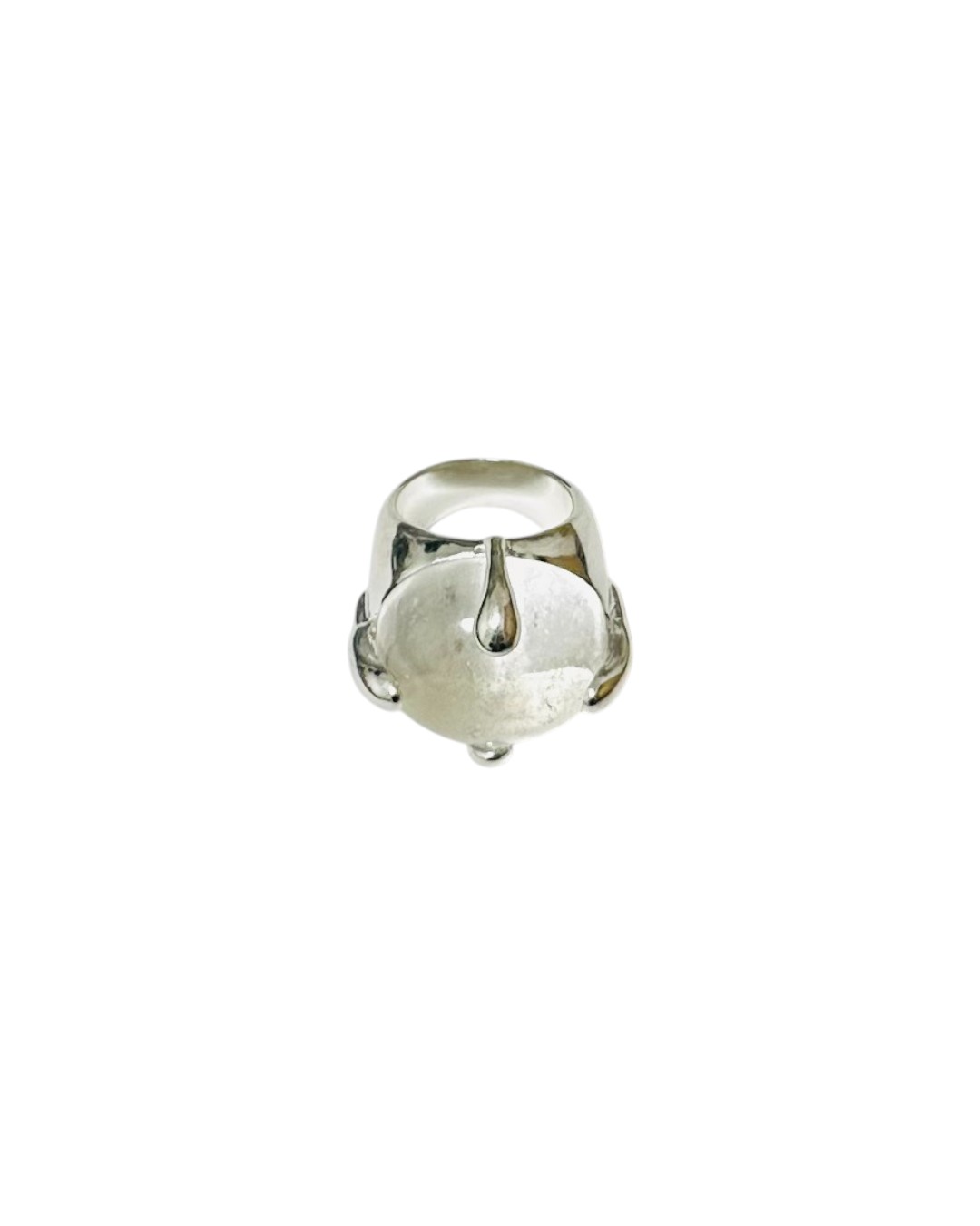 Claw Set with a large cabochon Rock Crystal, the Chrissie Ring is a fabulously striking piece focused on a beautiful stone highlighted by the slightly bulbous claws. ... Read more