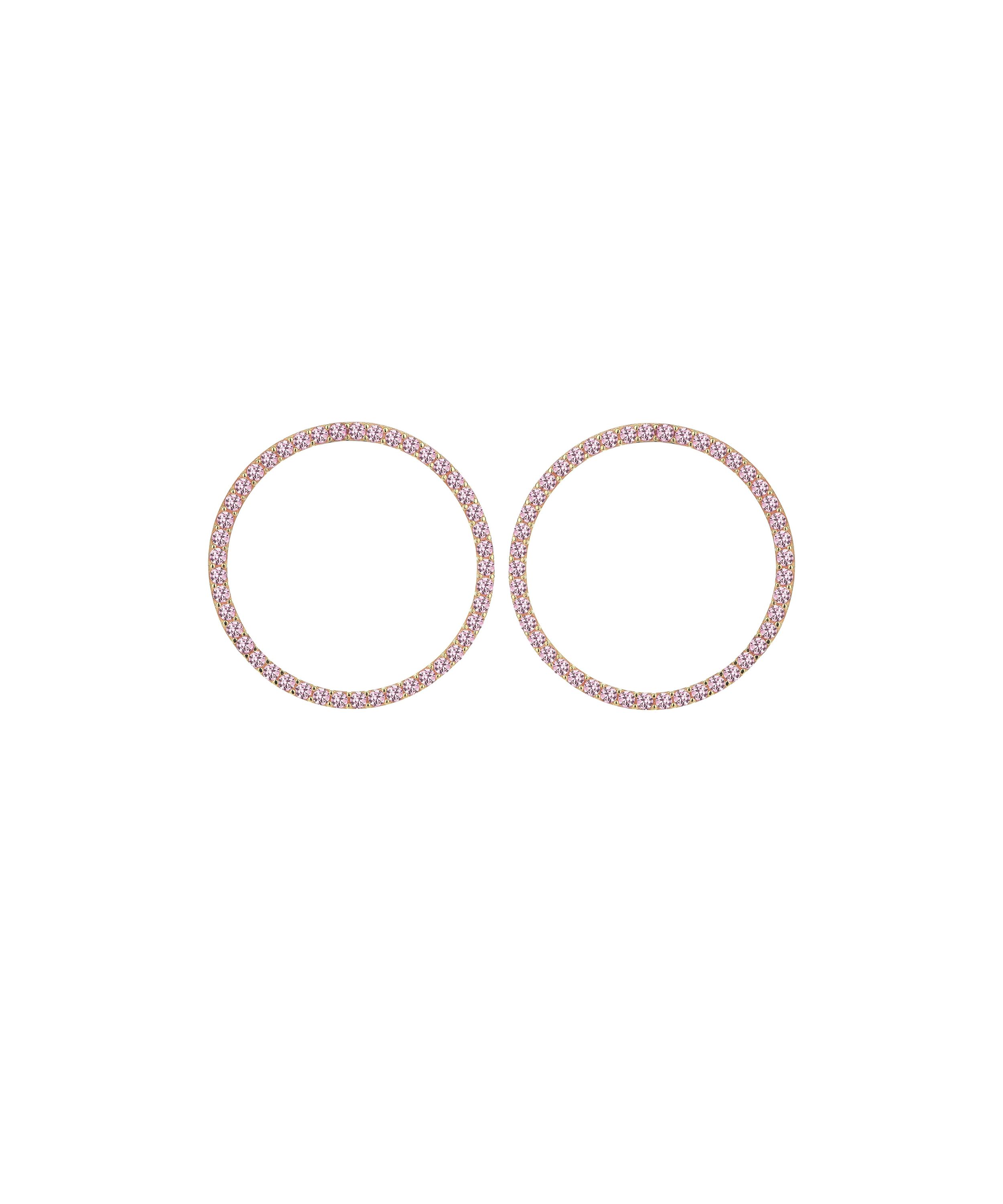 These delicate hoops are designed to bring a soft pop of colour to your jewellery rotation. Crafted in a warm gold tone finish, they are adorned with radiant pink stones that catch the light beautifully. Their sleek circular silhouette keeps the look refined and versatile, while the subtle sparkle ... Read more adds a playful, feminine touch. Easy to style and effortless to wear, they’re perfect for everyday shine or dressing up your evening stack.