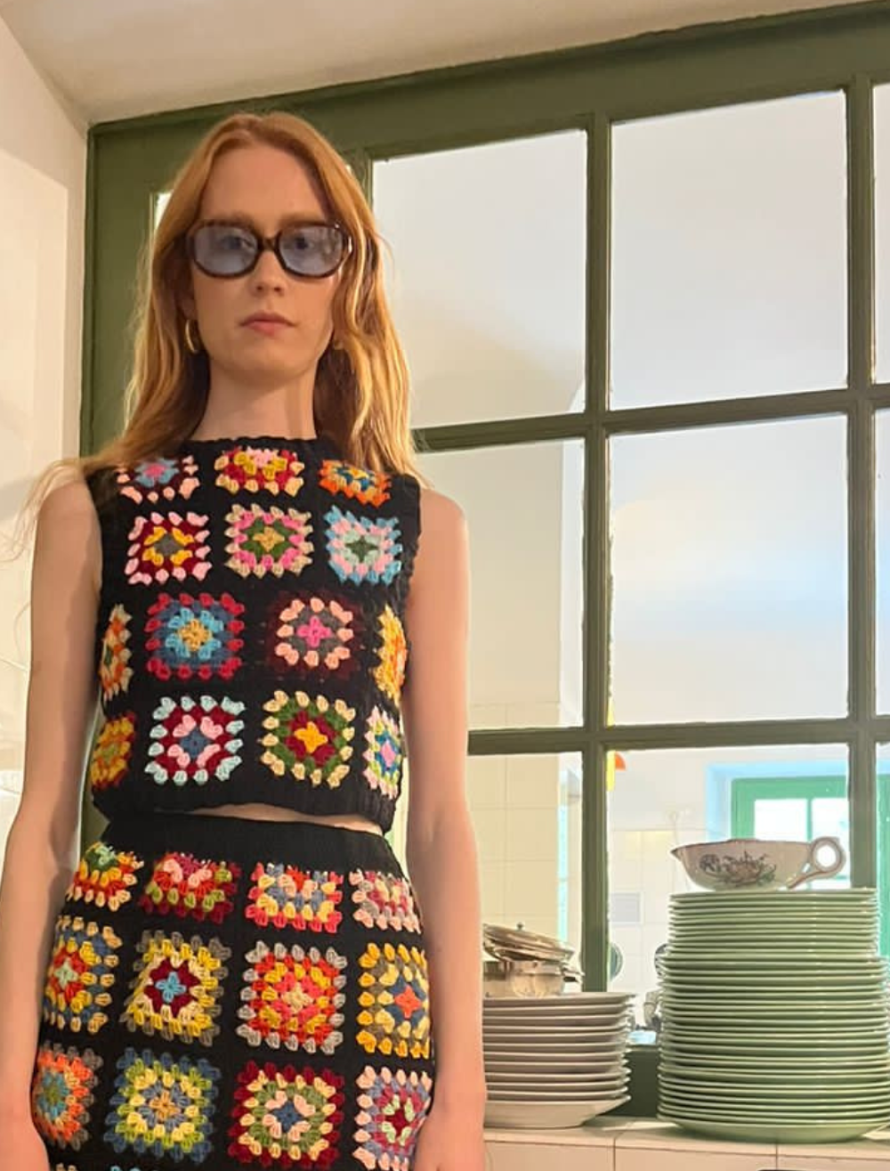 The Saray Knit Gilet Gold by Jessica K is perfect for versatile styling. Pair it effortlessly with the matching skirt for a stunning summer ensemble or layer it with a crisp white shirt for a chic transitional look. Hand-knitted by skilled artisans in their Beirut atelier, this sleeveless, ... Read more round-neck gilet is a wearable masterpiece.| To customise the colour and size, please get in touch with us and specify in order notes. Takes around 4 weeks |