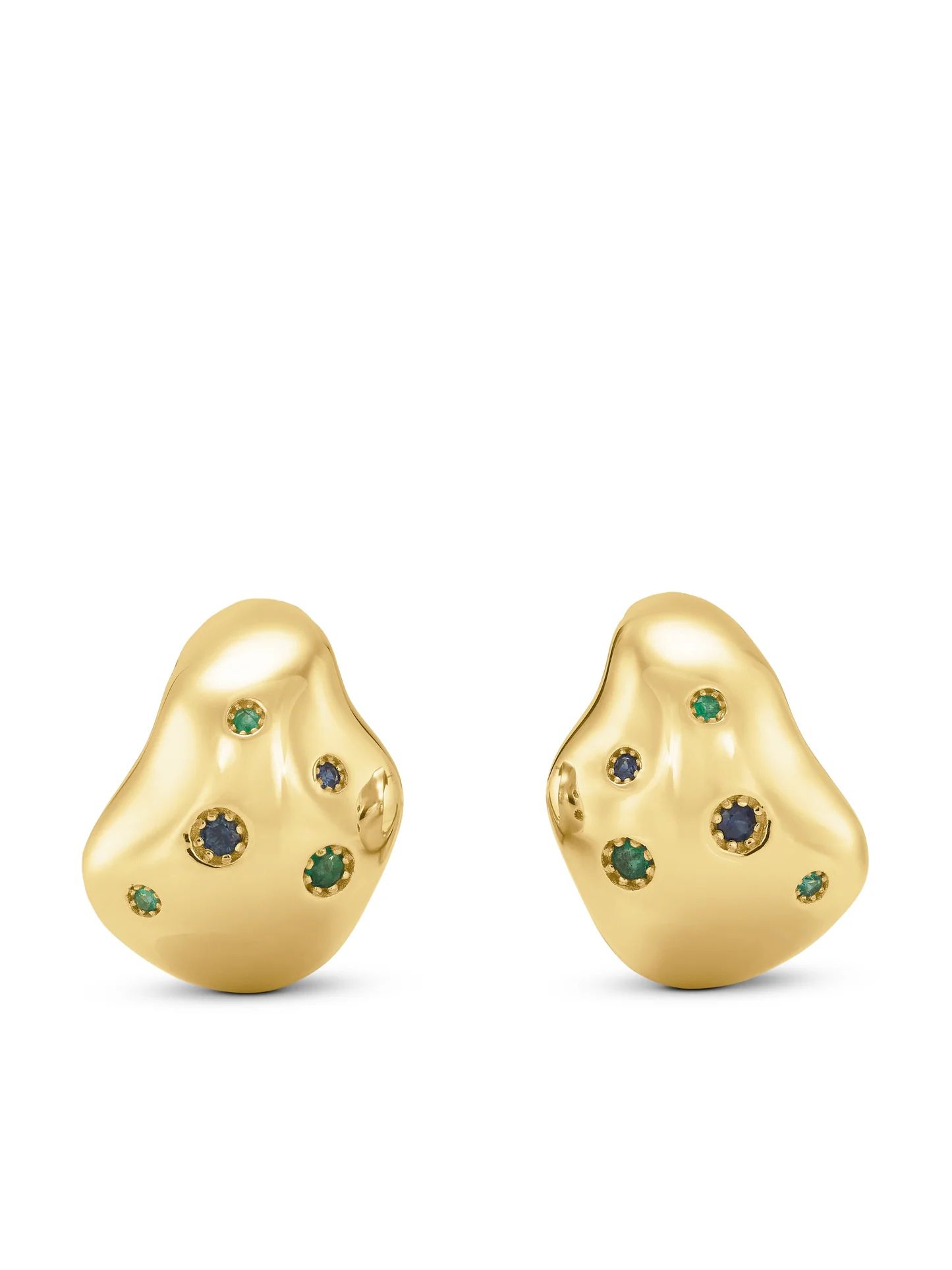 The Shapeless Hoop in Emerald and Sapphire reimagines the classic hoop through BOULO's signature unstructured form. Softly contoured gold holds flashes of green and blue, set like natural accents. The result feels fluid and intuitive, with colour appearing as the piece moves. Comfortable and easy on ... Read more the ear, it's designed for everyday wear while remaining distinctly expressive. A modern fine jewellery piece that celebrates individuality through colour, form and thoughtful design.
