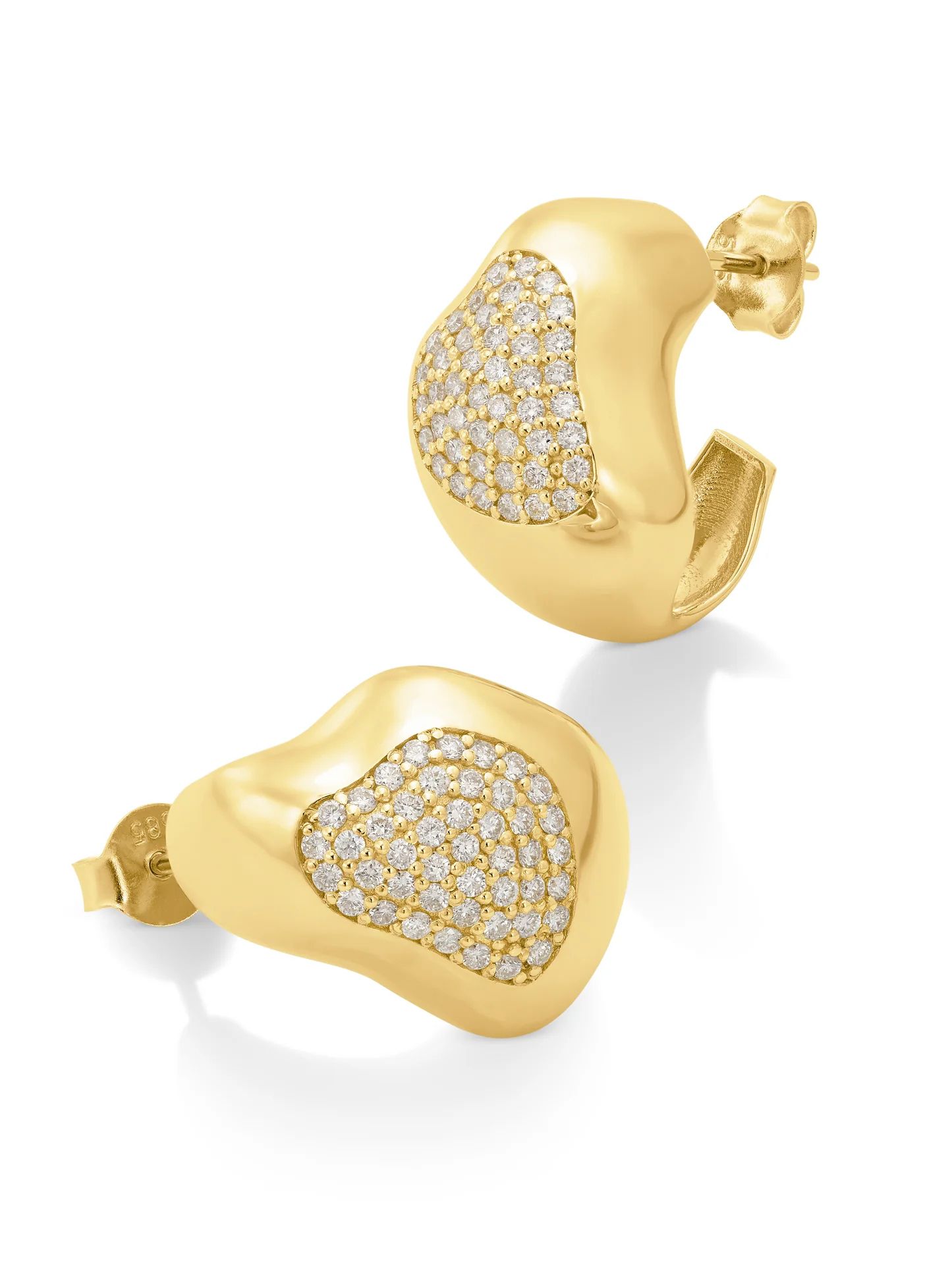 The Shapeless Nest Hoop with diamonds introduces a more luminous expression of BOULO's signature design. A softly contoured gold form frames a pavé-set diamond nest, creating depth through contrast and texture. The diamond sit recessed within the gold offering generous light. Balanced and ... Read more comfortable to wear, the hoop feels both polished and relaxed. A refined yet expressive piece that blends BOULO's signature design with subtle brilliance, designed for those who are drawn to quietly confident presence.