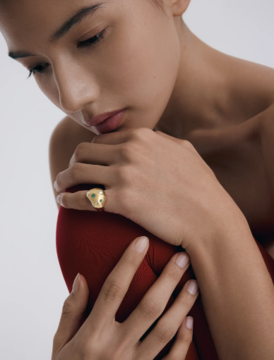 Emerald and diamond come together in this Shapeless ring through a design that feels fluid, intentional, and effortlessly wearable. The contrast between vibrant green and clean brilliance is softened by BOULO’s signature unstructured form, creating a balance that feels natural and comfortable on the ... Read more hand. Designed as an everyday pinky ring, it brings colour and light into daily wear without excess. A distinctive fine jewellery piece that highlights modern design and the beauty of considered imperfection. Please allow 6-8 weeks for Made-to-order pieces