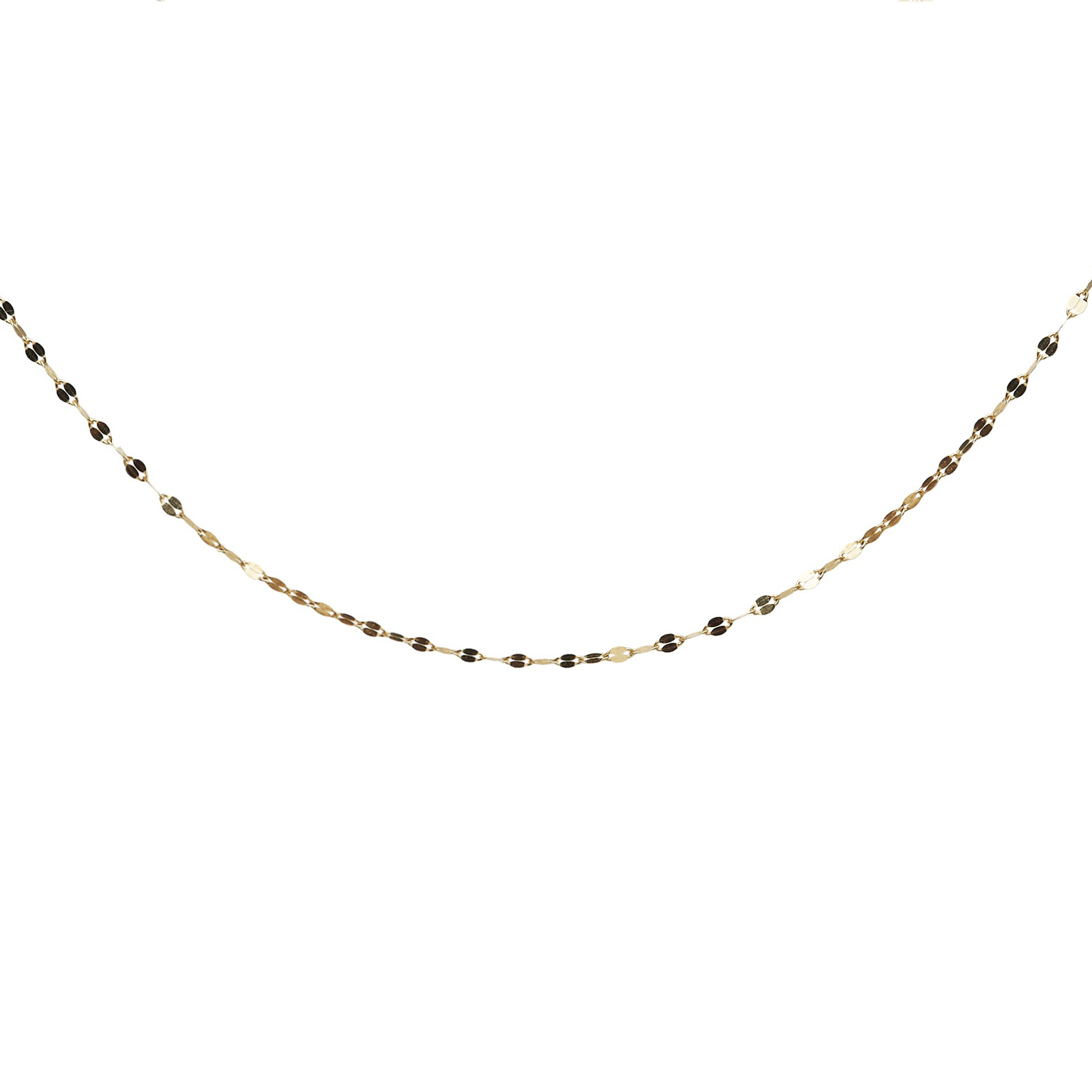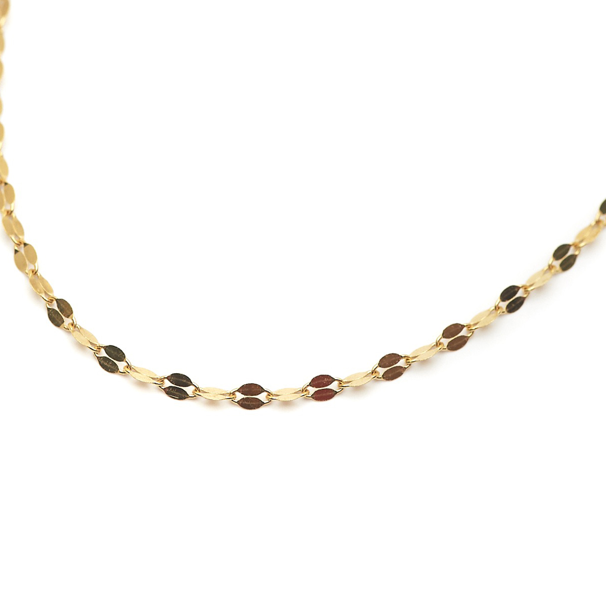 As the waves continue their shimmering dance in the light, so shall you. With every subtle turn of movement, this chain is sure to catch the light and gives the most subtle of twinkles - never to take the light away from the star of the show that is you. Dazzle in the glimmer of evening light ... Read more with the Shimmer necklace. Details: 2mm at the widest part of the chain 15 to 17 inches (extended)